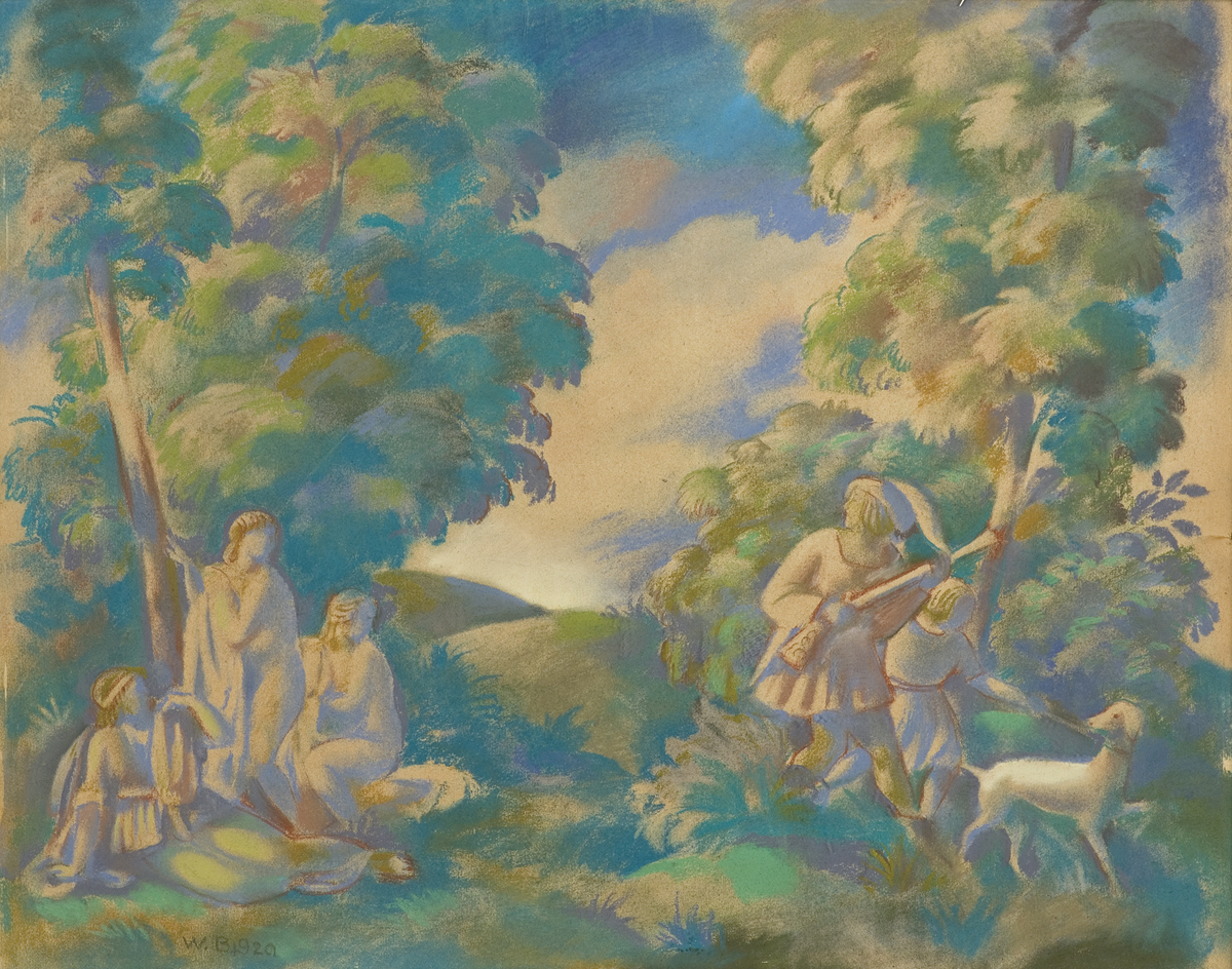 Wacław Borowski (Łódź 1885 - Łódź 1954) - malarz, grafik, scenograf - w latach 1905-1909 studiował w Krakowie malarstwo u Józefa Mehoffera w Akademii Sztuk Pięknych i, równolegle, historię sztuki na Uniwersytecie Jagiellońskim. W latach 1909-1913 przebywał w Paryżu. Zafascynowany dawnym malarstwem, kopiował wiele obrazów w muzeach. W okresie 1911-1914 podróżował do Włoch, studiując sztukę renesansu. Lata 1914-1919 spędził w Szwajcarii. Po powrocie do kraju mieszkał w Warszawie, gdzie w latach 1927-1933 był profesorem malarstwa i kompozycji w Instytucie Sztuk Plastycznych. Czynny na wielu polach, zajmował się malarstwem sztalugowym, dekoracyjnym malarstwem ściennym (m.in. polichromie na Zamku Królewskim, na Rynku Starego Miasta w Warszawie), uprawiał grafikę (trzy teki litografii), projektował plakaty, ilustracje książkowe i scenografie dla teatrów Warszawy, Krakowa i Łodzi. Był współzałożycielem i prezesem grupy „Rytm”, członkiem Stowarzyszenia Grafików „Ryt”, należał do Towarzystwa Artystów Polskich „Sztuka”. Wiele wystawiał tak w kraju jak i za granicą, a jego prace wielokrotnie odznaczane były medalami i nagrodami. Twórczość Borowskiego należy do „klasycyzującego” nurtu polskiego malarstwa, związanego m.in. z artystami skupionymi wokół grupy „Rytm”. Jego obrazy wyróżnia zarówno dążność do syntezy i swoistego uproszczenia a nawet pewnej geometryzacji form, jak miękkość i statyka układów kompozycyjnych, opartych na rytmie ruchu, linii i płaszczyzn. Wrażenie ciszy, ładu i harmonii podtrzymuje łagodne światło i subtelna, pastelowa kolorystyka współtworząca liryczny nastrój pogodnej melancholii.