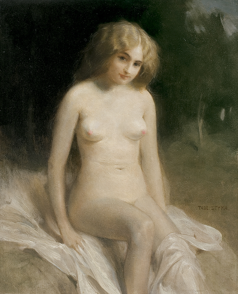 Tadeusz Styka (Kielce 1889 - Nowy Jork 1954) - syn malarza Jana i starszy brat Adama Styki, już jako dziecko wykazywał niezwykłe zdolności plastyczne. Jego pierwszym nauczycielem był ojciec. Później Tadeusz kształcił się w Paryżu u Eugene Carriere’a i Jean-Jacquesa Hennera. Już od najmłodszych lat wiele wystawiał - na Salonach w Paryżu oraz w wielu miastach Francji, w Londynie, Nowym Jorku, Chicago, w Kanadzie i w Polsce. Często współpracował z ojcem wykonując, m.in. szkice do zamierzonej panoramy Bitwy pod Grunwaldem. Od roku 1929 mieszkał w Nowym Jorku, zatrzymując jednak pracownię w Paryżu. Był przede wszystkim portrecistą, malarzem arystokracji, pięknych kobiet i sławnych osób (Portret Lwa Tołstoja (1903), Portret Poli Negri, Portret Ignacego Jana Paderewskiego). Ponadto był doskonałym malarzem animalistą (Lwy u wodopoju). Malował także sceny symboliczne, rodzajowe i obrazy religijne; te ostatnie często wspólnie z bratem Adamem.
