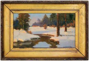 Wiktor Korecki (Kamieniec Podolski 1890 - Komorów k. Warszawy 1980) - malarz pejzażysta - gimnazjum ukończył w Kijowie, tam też studiował w Szkole Rysunkowej Aleksandra Muraszki. Po studiach wrócił do Kamieńca Podolskiego, skąd w roku 1921 wyjechał do Warszawy. Tu miał pracownię na rogu ulic Tamki i Cichej. Niestety zgromadzone tam obrazy spłonęły w czasie powstania 1944 roku. Po powstaniu artysta przebywał w obozie w Pruszkowie skąd trafił do obozu pracy w Lipsku. Do kraju powrócił w roku 1946 i zamieszkał w Komorowie pod Warszawą, a później w Milanówku. Jego nastrojowe krajobrazy emanujące spokojem i pogodą cieszyły się zawsze dużą popularnością. Korecki najczęściej malował pejzaże zimowe z motywem leśnej drogi i strumienia wijącego się wśród śniegów, a obok nich także wiosenne, letnie czy jesienne widoki z Mazowsza.