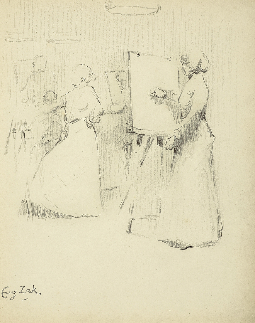 Eugeniusz Zak (Żak) (Mogilno/Mohylno w dawnej guberni mińskiej 1884 – Paryż 1926) dzieciństwo spędził w Mogilnie (Mohylnie) i (od 1892) w Warszawie. W roku 1902 wyjechał do Paryża, gdzie studiował w École des Beaux-Arts u Jeana Léona Gérôme’a i w Académie Colarossi u Alberta Besnarda. W 1903 podróżował do Włoch, był w Rzymie, we Florencji, Pizie, Mediolanie. Następnie pojechał do Monachium, gdzie przez pół roku kształcił się u Antona Ažbego. W 1904 powrócił do Paryża i zadebiutował w Salonie Jesiennym. W Paryżu pozostał do 1914, później przeniósł się do Vence i Nicei. Lata 1916-1921 spędził w Polsce. W 1921 wyjechał do Niemiec; mieszkał w Bonn (gdzie wykonał polichromie do willi architekta F.A. Breuhausa), później w Berlinie. W 1923 wrócił do Paryża. Wiele wystawiał, biorąc m.in. udział w paryskich Salonach, w wystawach w Barcelonie (1912), Wenecji (Biennale 1914), Wiedniu (1915). Czynnie uczestniczył także w polskim życiu artystycznym – należał do Tow. Artystów Polskich „Sztuka”, wystawiał też z Formistami, był współzałożycielem ugrupowania „Rytm”. Był jednym z najwybitniejszych polskich artystów tzw. École de Paris. Inspiracji szukał w sztuce renesansu, w malarstwie Cezane’a i Picassa. We wcześniejszym okresie twórczości malował portrety oraz wykonywał – inspirowane sztuką renesansową – sangwinowe rysunki głów i popiersi. Malował też idealizowane, liryczne i poetyckie w nastroju sceny w pejzażu, a po 1920 kompozycje figuralne z jedną lub kilkoma postaciami pasterzy, tancerek, arlekinów we wnętrzach lub w pejzażu. Jego obrazy przesycone są łagodnym nastrojem melancholii i zadumy. Wiotkie sylwetki przedstawianych postaci artysta poddawał swoistej stylizacji – wydłużając proporcje i nadając im giętkie, niemal taneczne pozy. Obrazy te odznaczają się dekoracyjnością, rytmicznymi, „tanecznymi” układami form, miękkim światłocieniowym modelunkiem, a często także efektami fakturowymi.