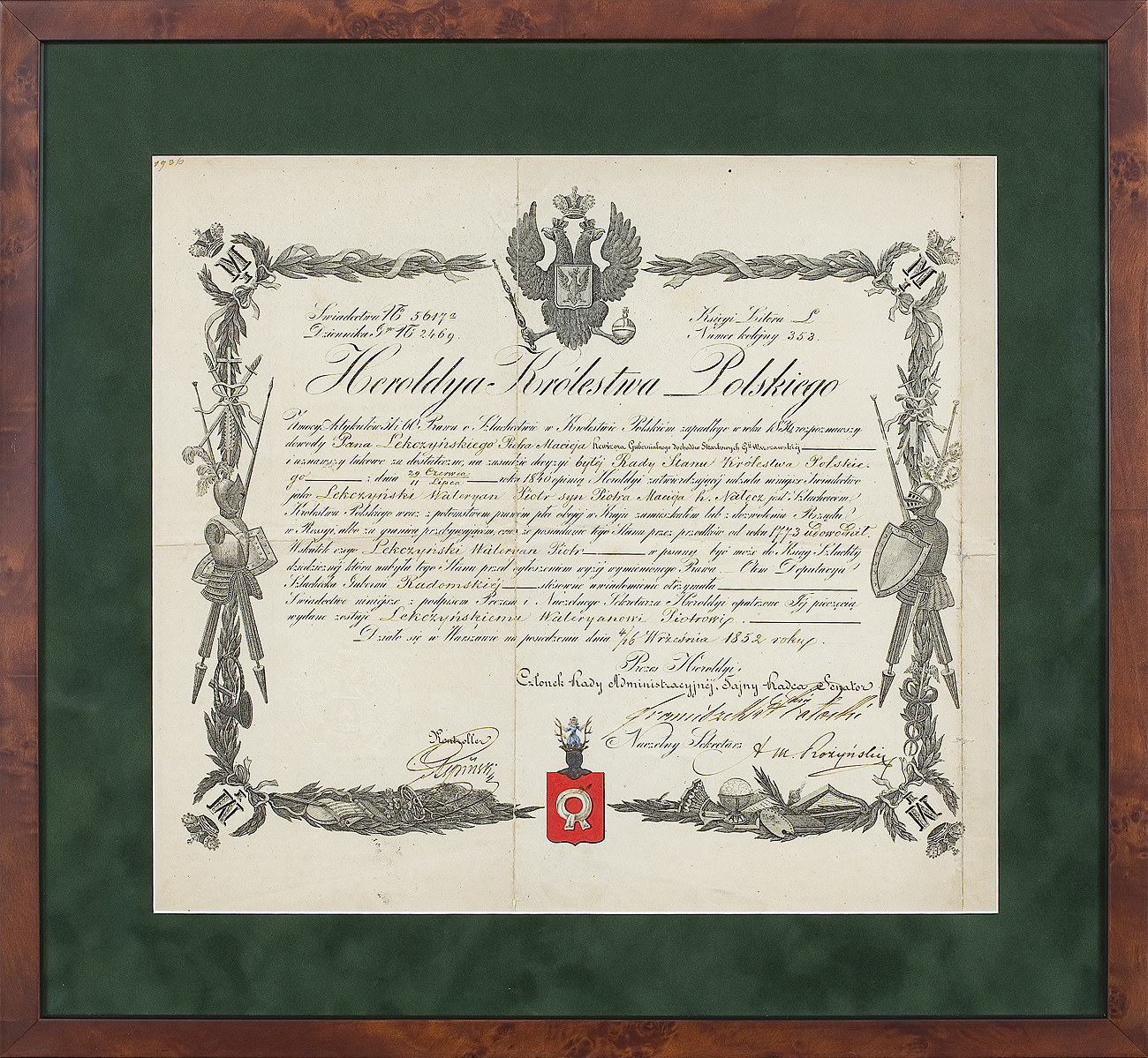 HEROLDYA KRÓLESTWA POLSKIEGO - PATENT z 1852
