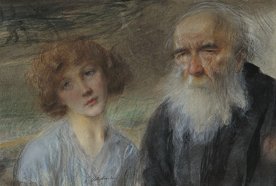 Teodor Axentowicz (Braszów w Siedmiogrodzie 1859 - Kraków 1938) – malarz, pastelista, litograf – był jednym z najbardziej znanych i cenionych malarzy polskich. Kształcił się w Akademii Sztuk Pięknych w Monachium pod kierunkiem Gabriela Hackla, Aleksandra Wagnera, Gyuli Benczúra. Studia uzupełniał w Paryżu, gdzie następnie przebywał przez lat kilkanaście. Brał udział w paryskich Salonach; w 1890 otrzymał członkostwo Société Nationale des Beaux-Arts. W tym czasie wielokrotnie wyjeżdżał również do Londynu. W 1895 powrócił do kraju i zamieszkał na stałe w Krakowie, powołany na profesora tamtejszej Szkoły Sztuk Pięknych (od 1900 Akademii). W uczelni tej nauczał nieprzerwanie do 1934, dwukrotnie pełniąc funkcję rektora (lata 1910-11 oraz 1927-28). Był jednym z członków-założycieli Towarzystwa Artystów Polskich „Sztuka”, członkiem wiedeńskiej „Secesji” i współpracownikiem jej pisma „Ver Sacrum”. Powodzenie przyniosły mu zwłaszcza idealizowane wizerunki wytwornych dam oraz wdzięczne portrety dziecięce. Malował też obrazy o tematyce rodzajowej; był jednym z pierwszych malarzy Huculszczyzny i Hucułów. Tworzył obrazy historyczne i kompozycje symboliczne związane z upływem czasu, przemijaniem, starością. We wczesnym, monachijskim okresie były to obrazy utrzymane w duchu akademickiego realizmu; na późniejszą twórczość artysty wywarło wpływ angielskie malarstwo XVIII w. oraz dzieła malarzy współczesnych - Boldoniego, Whistlera, Sargenta. Jego obrazy cechuje dekoracyjność, elegancja, świeżość subtelnej gamy kolorów i delikatna secesyjna stylizacja. Początkowo malował olejno i akwarelą, a po 1890 przede wszystkim mistrzowsko opanowaną techniką pastelu. Zajmował się ilustratorstwem i litografią, projektował plakaty wystaw „Sztuki”.