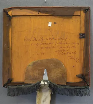 na odwrocie na sklejce dedykacja i sygnatura: Pani B. Słowikowskiej | z wyrazami podziękowania | za radość przeżycia | wystawy | w Lublinie | Hasior | W IV.78.