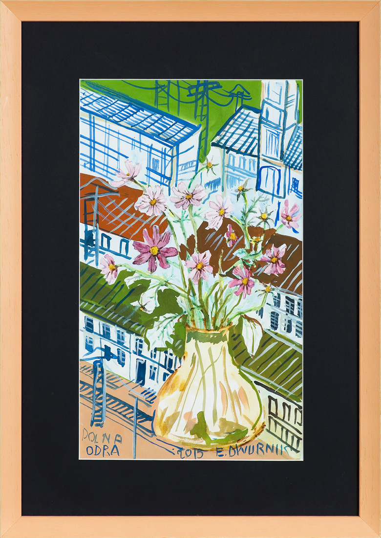 Edward Dwurnik (Radzymin 19 IV 1943 - Warszawa 28 X 2018) studiował malarstwo w ASP w Warszawie (1963-1970), jednak jako swego „mistrza“ wymienia Nikifora. Jego to prace, zobaczone po raz pierwszy w 1965, zainspirowały ówczesnego studenta III roku do narysowania pierwszych prac z cyklu „Podróże autostopem“, które kontynuował w nastepnych latach. W 1972-1978 powstawał cykl „Sportowcy“, w którym portretowane były, dodajmy - kąśliwie, typowe postaci z lat 70. Równolegle od 1975 powstawał cykl „Robotnicy“, który kulminował w okresie „Solidarności“ 1980-1981. Za prace z tego cyklu Dwurnik otrzymał w 1981 Nagrodę Krytyki Artystycznej im. Cypriana Kamila Norwida, natomiast za obrazy z cyklu „Warszawa“ (1981), proroczo zapowiadające stan wojenny - Nagrodę Kulturalną „Solidarności“ podziemnej w 1983. W latach 80. malarstwo Dwurnika przybrało wyraz ekspresyjny i dramatyczny. Powstające w tej dekadzie obrazy miały niejednokrotnie wymowę polityczną, przybierały też kostium historyczny, tak czy inaczej odnoszący się do współczesnych spraw i realiów. Cykl „Droga na Wschód“ (1989-91) upamiętniał ofiary stalinizmu, natomiast cykl „Od Grudnia do Czerwca“ (1990-94) - ofiary stanu wojennego. Zarówno ideowe, jak i czysto malarskie walory tych prac przyniosły artyście ogromne uznanie, zarówno w kraju jak i za granicą. Jego wyrazem była prestiżowa nagroda Fundacji Coutts & Co w Zurychu (1992). W latach 90. powstają cykle będące kontynuacją „Podróży autostopem“: „Niebieskie miasta“ (od 1993) i „Diagonale“ (od 1996), jak również kompozycje nowego typu, jak widoki morskie (cykl „Błękitne“, 1992-93) czy cykl „Wyliczanka“ (1996-99). Artysta wiele wystawia, miał ok. 100 wystaw indywidualnych w Polsce i za granicą, brał też udział w licznych wystawach i festiwalach krajowych i międzynarodowych, m.in.: X Biennale Sztuki Współczesnej, Menton 1974, Documenta 7, Kassel 1982, 5th Biennale, Sydney 1985, XIX Biennale Sztuki, Sao Paulo 1987; Olimpiada Sztuki, Seul 1988. Równolegle z malarstwem uprawiał rysunek, collage, grafikę warsztatową (litografia, techniki metalowe, kserografia, stemple) i użytkową (ilustracja, plakaty do własnych wystaw indywidualnych).