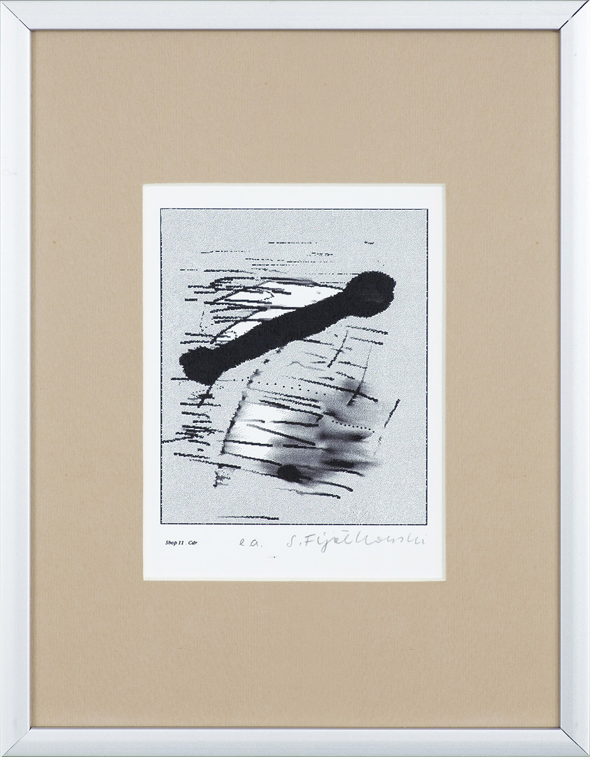 Stanisław Fijałkowski (Zdołbunow na Wołyniu 1922 - Łódź 2020) w latach 1944-1945 przebywał na robotach przymusowych w Królewcu. W latach 1946- 1951 studiował w Państwowej Wyższej Szkole Sztuk Plastycznych w Łodzi pod kierunkiem Władysława Strzemińskiego, Stefana Wegnera i Ludwika Tyrowicza, u którego uzyskał dyplom. W latach 1947-1993 był pedagogiem w macierzystej uczelni, od 1983 profesorem. Pełnił funkcje prorektora i dziekana Wydziału Grafiki. Wykładał też za granicą: w Mons (1978, 1982), Giessen (1989-1990), Marburgu (1990). Jest wiceprezydentem Międzynarodowego Stowarzyszenia Drzeworytników XYLON w Szwajcarii i przewodniczącym Polskiej Sekcji tej organizacji. Należy do zagranicznych Akademii nauk i sztuk w Salzburgu i Brukseli. Jest laureatem Nagrody Krytyki Artystycznej im. Cypriana Norwida 1971, Nagrody im. Jana Cybisa 1990 i wielu innych wyróżnień. Jako pierwszy w Polsce przetłumaczył teksty Wasyla Kandinskiego („Punkt i linia a płaszczyzna” i „O duchowości w sztuce”), oba wydane drukiem, oraz Kazimierza Malewicza „Świat bezprzedmiotowy”. Malarstwo Fijałkowskiego bazuje na skromnym zasobie abstrakcyjnych znaków i ograniczonej gamie barwnej. Kompozycje, w większości sugerujące ujęcia pejzażowe czy szerzej – przestrzenne, budowane są jakby pojedynczymi dotknięciami pędzla. Każdy szczegół nabiera ważności, śledzi się każdy niuans barwy czy faktury. Charakterystyczne kształty i motywy powtarzają się w różnych konfiguracjach w pracach artysty niczym wyrazy, z których układa za każdym razem inną opowieść. Obrazy noszą zazwyczaj poetyckie tytuły, często wpadające w tony groteskowe czy surealistyczne. Cechy te składają się na niezwykłe, intrygujące, autonomiczne zjawisko artystyczne. Malarstwu Fijałkowskiego od początku lat 60. towarzyszy czarno-biała grafika, głównie linoryt i drzeworyt, sporadycznie litografia.