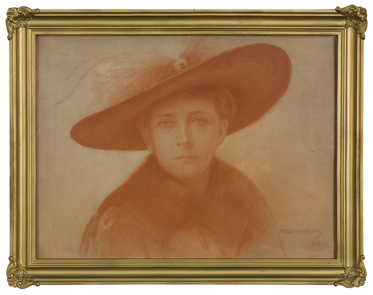 PORTRET PANI W SZEROKOSKRZYDŁYM KAPELUSZU, 1917