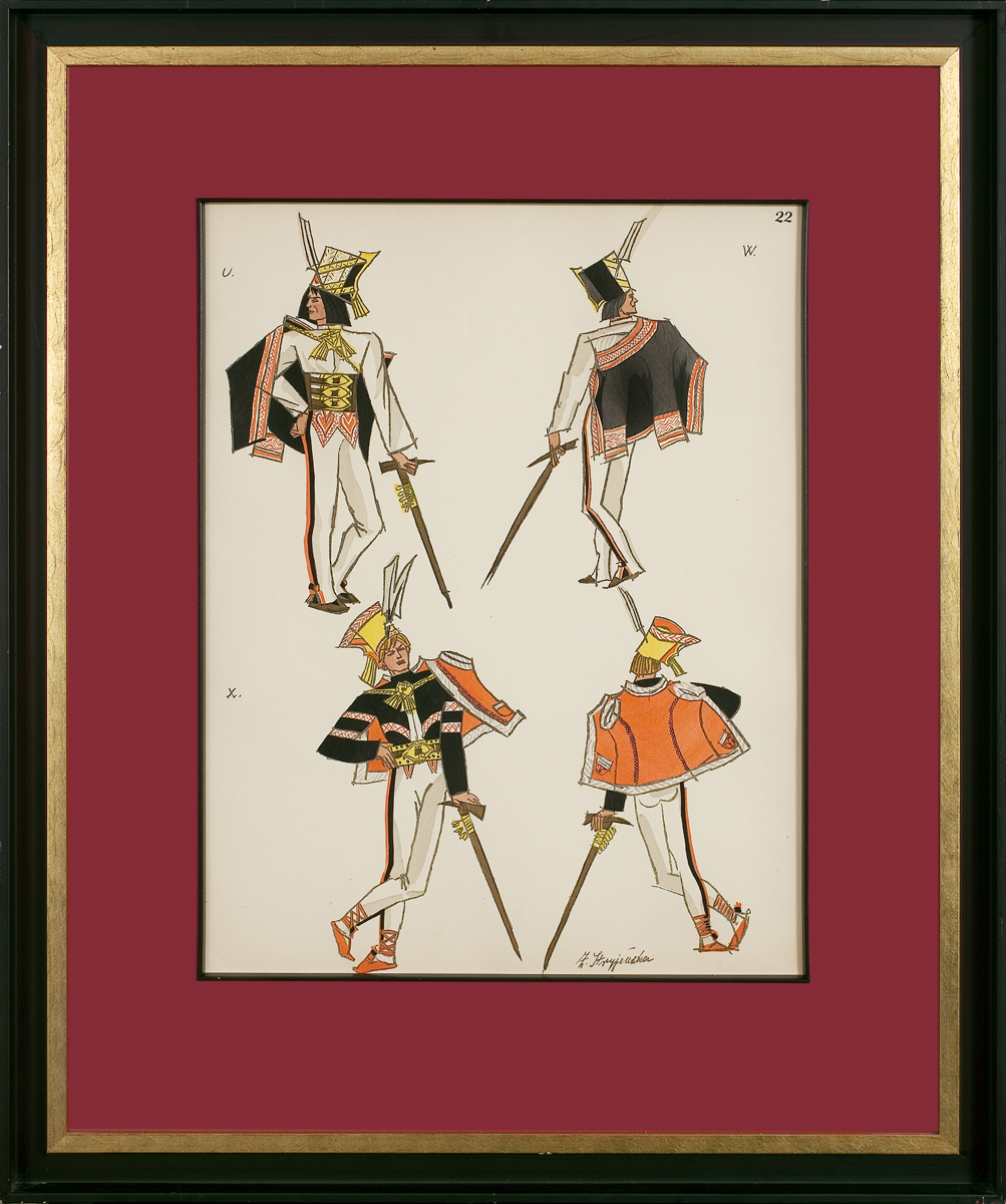 Zofia Stryjeńska, z domu Lubańska (Kraków 1891 - Genewa 1976) - malarka, ilustratorka, scenograf - była jedną z barwniejszych postaci polskiego środowiska artystycznego w dwudziestoleciu międzywojennym. Po krótkim okresie nauki u Leonarda Stroynowskiego i w krakowskiej szkole Marii Niedzielskiej wyjechała do Monachium, gdzie w latach 1911-1912 w męskim przebraniu studiowała w Akademii Sztuk Pięknych (kobiet wówczas na studia nie przyjmowano). Debiutowała w krakowskim TPSP w roku 1912 cyklem kartonów Polskich bajd inspirowanych opowieściami ludowymi. W 1916 wyszła za mąż za Karola Stryjeńskiego. Do 1919 mieszkała w Krakowie, później w Paryżu, Krakowie, Zakopanem i Warszawie. W roku 1925 odniosła międzynarodowy sukces na Wystawie Sztuki Dekoracyjnej w Paryżu, otrzymując Gran Prix w czterech działach (malarstwo, plakat, tkanina, ilustracja) oraz Diplom d’Honneur za projekty zabawek. Zajmowała się dekoracyjnym malarstwem architektonicznym, polichromią, ilustratorstwem, scenografią (m.in. Harnasie Karola Szymanowskiego; 1938), wzornictwem przemysłowym (projekty kilimów, zabawek). Stworzyła własny specyficzny styl w dekoracyjnie stylizowanych, barwnych, pełnych dynamiki i temperamentu obrazach; temperach, akwarelach i gwaszach. W ich tematyce odwoływała się do legend, wierzeń, historii i obyczajowości ludowej. Wydała kilka tek graficznych (Bożki słowiańskie, 1917 i 1922) i albumów reprodukcji (Tańce polskie, 1927; Pascha, 1929; Piastowie, 1929; Gusła Słowian / Magie Slave, 1934). Jej prace popularyzowane były także przez liczne barwne pocztówki.