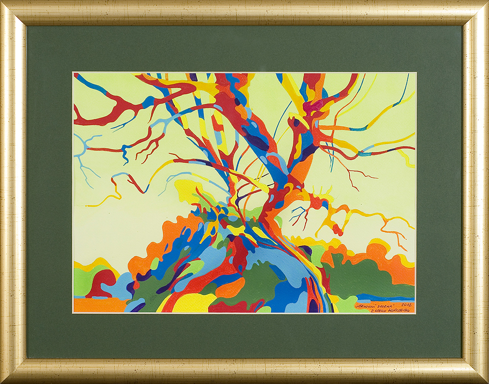 akryl, karton, 24,5 x 34,2 cm (w świetle passe-partout), sygn. p.d.: „NERWOWOŚĆ DRZEWA” 2012 | Z. OTTELO HORODECKI