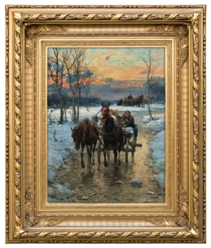 Alfred Wierusz-Kowalski (Suwałki 1849 – Monachium 1915) - jeden z najwybitniejszych polskich malarzy tzw. szkoły monachijskiej był, obok Józefa Brandta i Władysława Czachórskiego, także najpopularniejszym z polskich artystów osiadłych i stale działających w Monachium. Zamieszkał tam w roku 1873, już po studiach w Warszawie i w Dreźnie. Przez rok uczył się jeszcze w monachijskiej Akademii Sztuk Pięknych pod kierunkiem Alexandra Wagnera, a następnie przeniósł się do prywatnej pracowni Brandta. Uznanie krytyki i publiczności zdobył wcześnie; jego obrazy, odznaczane medalami na wystawach były rozchwytywane przez kolekcjonerów i niemieckich handlarzy. W roku 1890 został honorowym profesorem Akademii monachijskiej. Malował sceny rodzajowe i rodzajowo-historyczne z motywami jeźdźców, rycerzy, myśliwych, koni, wilków i śniegów. Po podróży do Afryki w roku 1903 podejmował też tematy orientalne. W polskich zbiorach muzealnych znalazło się stosunkowo niewiele prac artysty – jego obrazy sprzedawane głównie na rynku niemieckim w większej liczbie trafiały do kolekcji prywatnych, głównie w Niemczech i Stanach Zjednoczonych. Obecne często pojawiają się i na polskim rynku sztuki, zawsze budząc zainteresowanie kolekcjonerów.