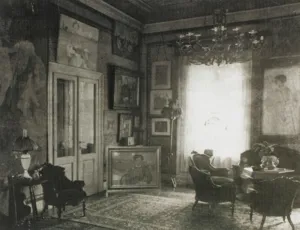Jacek Malczewski (Radom 1854 - Kraków 1929) - wybitny przedstawiciel malarstwa polskiego modernizmu, studia artystyczne rozpoczął w krakowskiej Szkole Sztuk Pięknych, gdzie w latach 1872-1875 uczył się pod kierunkiem Feliksa Szynalewskiego, Władysława Łuszczkiewicza i Jana Matejki, do którego pracowni uczęszczał ponownie w latach 1877-1879. Następnie kształcił się w Paryskiej École des Beaux Arts u E. Lehmanna (1876-1877).