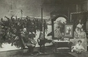 Wojciech Kossak (Paryż 1856 - Kraków 1942 ) – powszechnie znany malarz, postrzegany przede wszystkim jako świetny batalista. Syn i uczeń Juliusza Kossaka kształcił się w krakowskiej Szkole Sztuk Pięknych, w Akademii monachijskiej oraz w Paryżu. W latach 1895-1902 przebywał głównie w Berlinie, pracując dla cesarza Wilhelma II. Wiele podróżował, m.in. do Hiszpanii i Egiptu, gdzie wykonywał szkice do zamierzonych panoram. W późniejszych latach kilkakrotnie wyjeżdżał do Stanów Zjednoczonych wykonując zamówienia portretowe. W 1913 był mianowany profesorem warszawskiej Szkoły Sztuk Pięknych. W latach I wojny światowej pełnił służbę wojskową. Był współautorem panoram: „Racławice” (1893-1894), „Berezyna” (1895-1896), „Bitwa pod piramidami” (1901) oraz szkiców do niezrealizowanej „Somosierry” (1900). Z temperamentem i swobodą tworzył szeroko malowane, dynamiczne sceny batalistyczne, historyczne, rodzajowe oraz liczne portrety. Z upodobaniem malował konie. Jego obrazy, gloryfikujące dawne i współczesne artyście polskie wojsko i bohaterstwo żołnierzy, trafiały do patriotycznych uczuć odbiorców i cieszyły się ogromna popularnością.