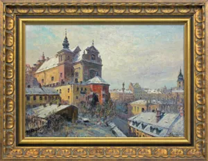 Władysław Chmieliński (Warszawa 1911 - Warszawa 1979) był malarzem związanym z Warszawą, gdzie stale mieszkał i pracował. W latach 1926-1931 studiował w warszawskiej Miejskiej Szkole Sztuk Zdobniczych i Malarstwa (dawna Klasa Rysunkowa). Wiodącym tematem jego obrazów były widoki miejskie, malowane olejno i akwarelą. W latach 1935-1938 stworzył cykl akwarel przedstawiających obiekty polskiej architektury; wśród nich, widoki Sandomierza, Krakowa, Kazimierza nad Wisłą, a także wnętrza zabytkowych kościołów czy pałaców, m.in. Zamku Królewskiego w Warszawie i Pałacu w Wilanowie. Malował także pejzaże i wiejskie sceny rodzajowe – kuligi, sanny, zaprzęgi, wesela, konie na tle krajobrazu. W latach 1967-1969 wyjeżdżał na dłuższe pobyty do Danii. W latach 1936-1939 artysta używał także pseudonimu „Władysław Stachowicz”.