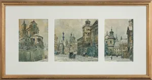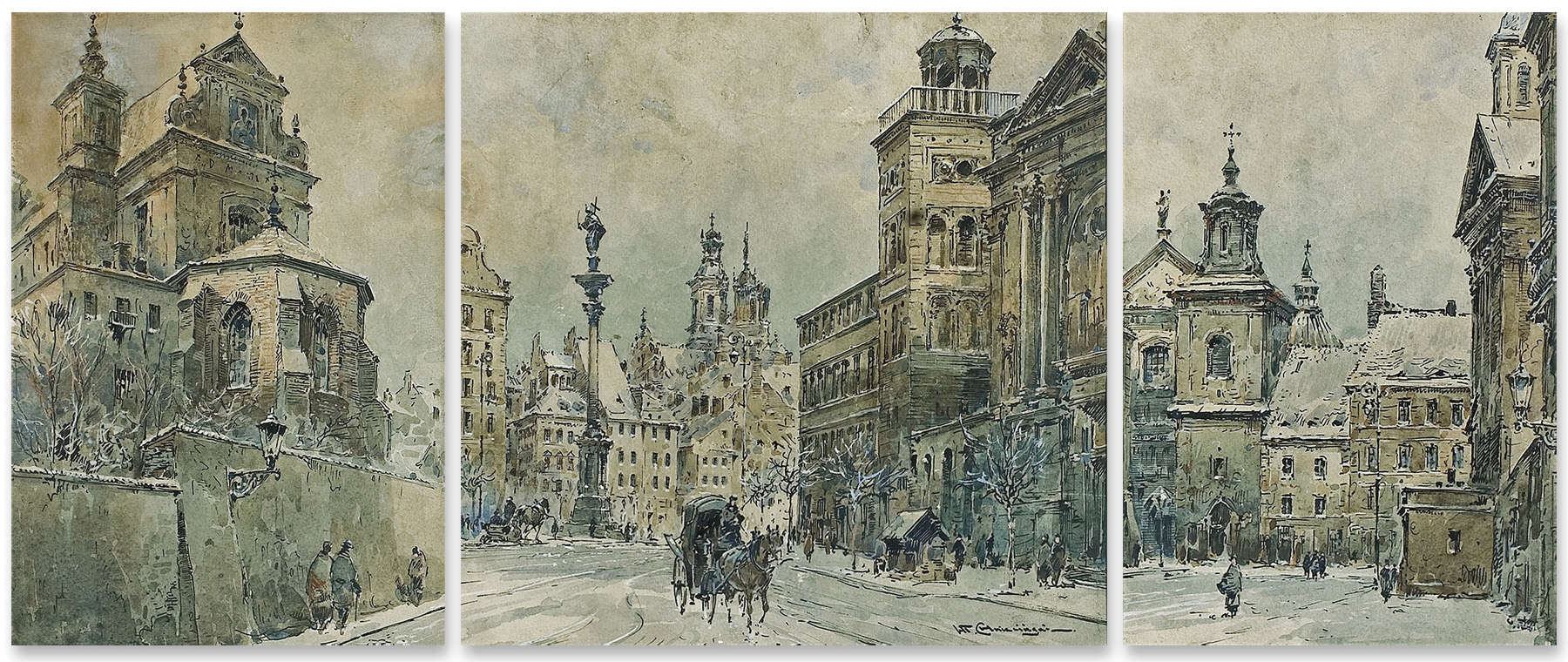 Władysław Chmieliński (Warszawa 1911 - Warszawa 1979) był malarzem związanym z Warszawą, gdzie stale mieszkał i pracował. W latach 1926-1931 studiował w warszawskiej Miejskiej Szkole Sztuk Zdobniczych i Malarstwa (dawna Klasa Rysunkowa). Wiodącym tematem jego obrazów były widoki miejskie, malowane olejno i akwarelą. W latach 1935-1938 stworzył cykl akwarel przedstawiających obiekty polskiej architektury; wśród nich, widoki Sandomierza, Krakowa, Kazimierza nad Wisłą, a także wnętrza zabytkowych kościołów czy pałaców, m.in. Zamku Królewskiego w Warszawie i Pałacu w Wilanowie. Malował także pejzaże i wiejskie sceny rodzajowe – kuligi, sanny, zaprzęgi, wesela, konie na tle krajobrazu. W latach 1967-1969 wyjeżdżał na dłuższe pobyty do Danii. W latach 1936-1939 artysta używał także pseudonimu „Władysław Stachowicz”.