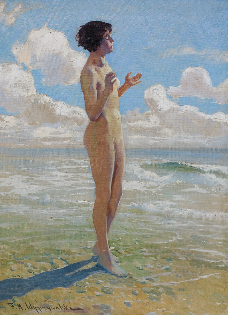 Feliks Michał Wygrzywalski (Przemyśl 1875 - okolice Rzeszowa 1944) w latach 1893-98 studiował w ASP w Monachium pod kierunkiem J.C.Hertericha i K.Marra. Studia uzupełniał w Académie Julian w Paryżu. Już w czasie studiów wyjeżdżał do Włoch, a po 1900 przez kilka lat mieszkał w Rzymie. W 1906 podróżował do Egiptu. W 1908 na stałe osiadł we Lwowie. W latach 1909-14 pracował w tamtejszym teatrze jako inspektor sceny. Jeszcze kilkakrotnie podróżował do Włoch. Był malarzem realistą; we wcześniejszym okresie twórczości skłaniał się ku naturalizmowi i silnej ekspresji. Dużą wagę przywiązywał do efektów świetlnych, stosował bogatą, żywą gamę barwną. We wczesnych obrazach często przedstawiał ludzką pracę (Burłacy) lub dramatyczne wydarzenia i napięcia społeczne (Strajk, Chleba nam głodnym). Malował też portrety, akty, pejzaże nadmorskie, krajobrazy z Włoch i Ukrainy. Po podróży do Egiptu w jego malarstwie powtarzały się motywy i tematy orientalne (Modlitwa Arabów, Sprzedawcy dywanów). Zajmował się dekoracyjnym malarstwem ściennym, m.in. w 1908 zaprojektował, a później wykonał alegoryczne malowidła do gmachu Izby Handlowo-Przemysłowej we Lwowie. Zajmował się grafiką, ilustrował książki i czasopisma, projektował witraże, kostiumy i dekoracje teatralne (m.in. do Peer Gynta, Irydiona, Nocy listopadowej).