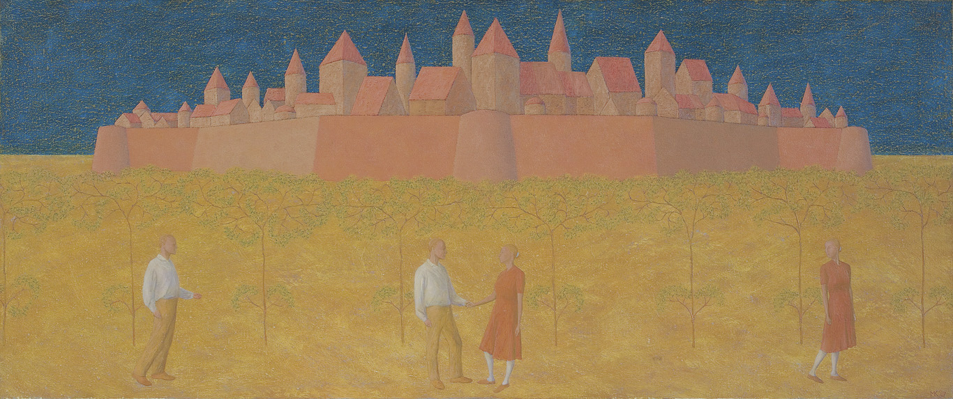 „Prosty, figuratywny styl jego malarstwa nawiązuje do sztuki włoskiego Quattrocenta, a wszelkie podobieństwo do surrealizmu – co wielokrotnie sam podkreśla – jest przypadkowe i powierzchowne. Ironiczny obserwator toczącego się życia i relacji międzyludzkich, a jednocześnie autor jednego z najbardziej poetyckich stylów malarskich. Maluje postaci na podstawie robionych przez siebie fotografii, do których pozuje sam lub z żoną Bogną. Ustawia je w nierealnym pejzażu, każe grać wyimaginowane role: pojedynkujących się par, tancerzy, muzyków, żonglerów. Często multiplikuje postaci, ukazując je w kolejnych fazach ruchu.” [cyt.: galeriaart.pl]