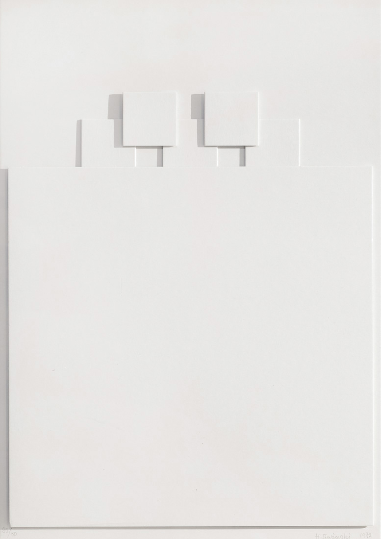 Henryk Stażewski (Warszawa 9 I 1894 - Warszawa 10 VI 1988) studiował w Szkole Sztuk Pięknych w Warszawie w latach 1913-1920. W początkach kariery malował martwe natury. Przejściowo wystawiał z ugrupowaniem „Formiści” (1922). Wziął też udział w Wystawie Nowej Sztuki w Wilnie w 1923. O tego czasu tworzył pod wpływem konstruktywizmu. Obok kompozycji malarskich trudnił się grafiką książkową, projektował wnętrza, sprzęty, a także scenografie – były to w większości prace teoretyczne i studyjne. Polskie i międzyna-rodowe ugrupowania awangardy, z którymi wystawiał i współpracował jako publicysta, to kolejno: „Blok” (1924-1926), „Praesens” (1926-1930), „Cercle et Carré” (1929-1931), „Abstraction-Création” (1931-1939), „a. r.” (1932-1939). Należał też do Koła Artystów Grafików Reklamowych (1933-1939). W 1930 był współorganizatorem zbiórki dzieł artystów międzynarodowej awangardy przeznaczonych dla muzeum łódzkiego (obecnie w Muzeum Sztuki w Łodzi). Po II wojnie mieszkał i działał w Warszawie. W latach 40. i 50. podejmował próby dostosowania się do postulatów sztuki figuratywnej. Z tego okresu pochodzą rysunkowe i malarskie kompozycje o tematyce pracy, budowy, a także projekty monumentalne. Po 1956, uznawany powszechnie za patrona polskiej awangardy, uprawiał już wyłącznie abstrakcję o konstruktywistycznym rodowodzie. Tworzył cykle prac, będących studiami płaszczyzn, linii, kolorów w różnych układach względem siebie. Przy pozorach chłodnej perfekcji umiał nasycić je emocją bezpośredniego dotknięcia, śladu ręki. Obok malarstwa i form pochodnych, jak collages, reliefy, multiple, tworzył formy przestrzenne i grafikę (autoryzował serigraficzne repliki swoich prac). Był laureatem wielu nagród i odznaczeń krajowych i zagranicznych, w tym Nagrody Herdera, Wiedeń 1972.