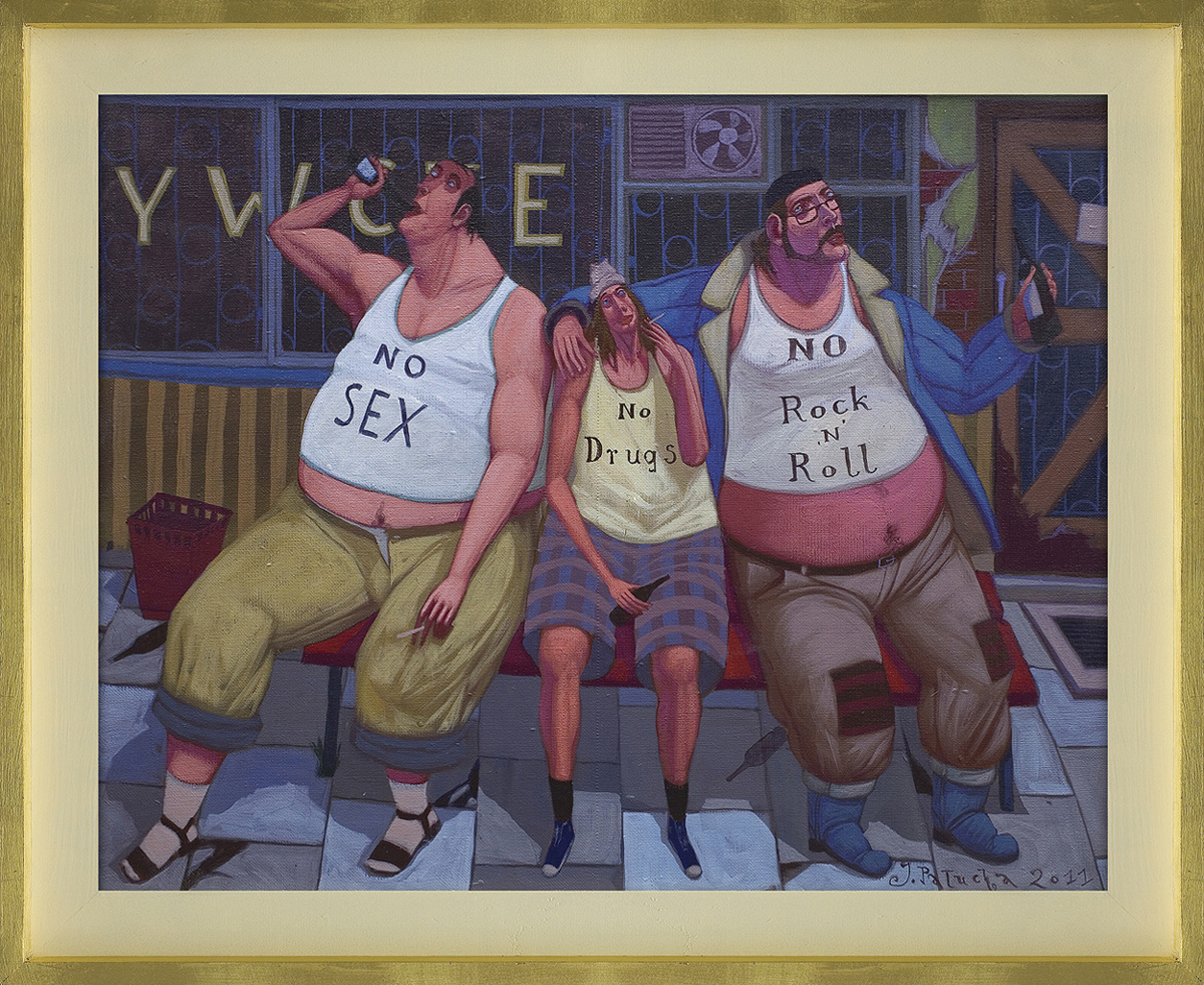 Jacek Pałucha (Częstochowa 1966, mieszka w Częstochowie) studiował na Wydziale Malarstwa ASP w Warszawie, uzyskując w 1993 dyplom w pracowni prof. Wiesława Szamborskiego. Równolegle był założycielem i liderem zespołów: "Formacja Nieżywych Schabuff", "Furmanka", "Superpałka i najeźdźcy z kosmosu", autorem tekstów i muzyki ich piosenek. Projektował również okładki i oprawę graficzną płyt i wydawnictw dla wyżej wymienionych zespołów, a także m. in. dla "Kultu". Jest autorem ilustracji do książki Grażyny Treli "Dobry mężczyzna to martwy mężczyzna". Grał główną rolę w filmie Łukasza Wylężałka "Balanga". Wystawia od 1993 w kraju i za granicą. Stylistyka i tematyka jego obrazów, zbliżona typem humoru do twórczości Jerzego Dudy-Gracza, zjednała mu popularność wśród zwolenników sztuki przedstawiającej, anegdotycznej i prześmiewczej wobec przywar współczesnego człowieka.