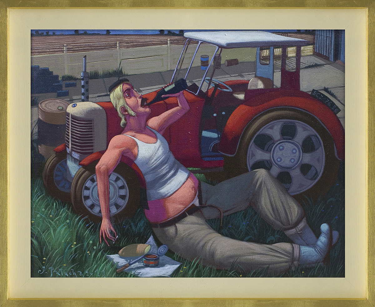 Jacek Pałucha (Częstochowa 1966, mieszka w Częstochowie) studiował na Wydziale Malarstwa ASP w Warszawie, uzyskując w 1993 dyplom w pracowni prof. Wiesława Szamborskiego. Równolegle był założycielem i liderem zespołów: "Formacja Nieżywych Schabuff", "Furmanka", "Superpałka i najeźdźcy z kosmosu", autorem tekstów i muzyki ich piosenek. Projektował również okładki i oprawę graficzną płyt i wydawnictw dla wyżej wymienionych zespołów, a także m. in. dla "Kultu". Jest autorem ilustracji do książki Grażyny Treli "Dobry mężczyzna to martwy mężczyzna". Grał główną rolę w filmie Łukasza Wylężałka "Balanga". Wystawia od 1993 w kraju i za granicą. Stylistyka i tematyka jego obrazów, zbliżona typem humoru do twórczości Jerzego Dudy-Gracza, zjednała mu popularność wśród zwolenników sztuki przedstawiającej, anegdotycznej i prześmiewczej wobec przywar współczesnego człowieka.