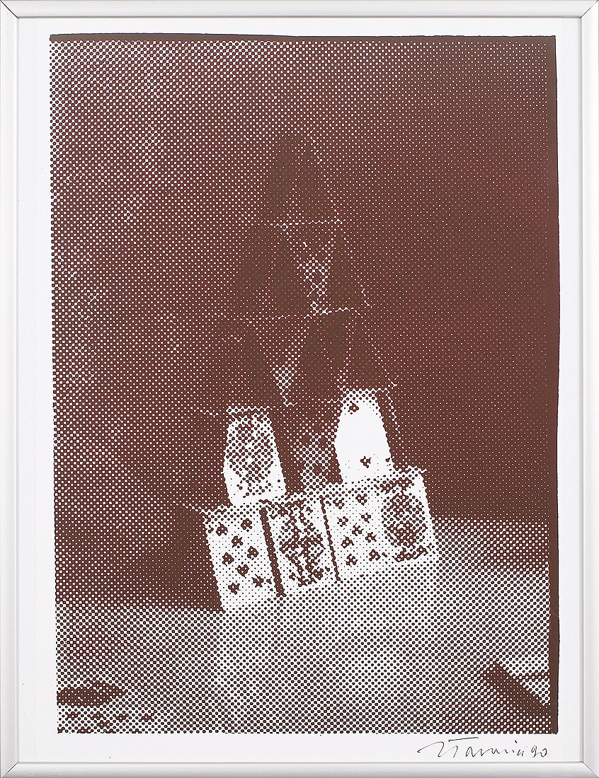 Jan Tarasin (Kalisz 11 IX 1926 - Warszawa 8 VIII 2009) studiował malarstwo w ASP w Krakowie pod kierunkiem prof. Zbigniewa Pronaszki (1946-1951). Jeszcze jako student zadebiutował na I Wystawie Sztuki Nowoczesnej w Krakowie w 1948/49. W połowie lat 50. stworzył cykle litografii: „Nowa Huta i jej mieszkańcy“, 1954, „Dom“, 1955). W pierwszym przeciwstawił się oficjalnemu optymizmowi, w drugim, operując symboliką martwej natury, zawarł treści egzystencjalne i odnoszące do niedawnego dramatu wojny. Po 1956 zaczął malować obrazy niefiguratywne. Układy wyodrębnionych elementów (określanych jako „przedmioty“) umieszczane były przez artystę na płaszczyźnie (cykl „Wnętrze“, 1957) ), lub w aluzyjnej przestrzeni (cykle „Uczta“, 1957, „Brzeg“, 1962-1964, „Przedmioty policzone“, od 1968, „Antykwariat“, 1968). Zasada ta utrzymuje się w jego malarstwie w następnych latach, różnice między okresami twórczości dotyczą sposobu opracowania „przedmiotów“ i ich usytuowania w przestrzeni obrazu lub wobec tła. Od lat 70. „przedmioty“ zmieniają się w graficzne, zwykle czarne znaki na jasnych tłach (cykl „Kolekcja“, od 1971). Tła z kolei bywają iluzyjnie przestrzenne, zróżnicowane walorowo, miękkie. W latach 90. artysta wrócił do kolorystycznego, bardziej malarskiego rozwiązywania zarówno znaków, jak i teł, często ciemnych lub przenikających się z „przedmiotami“ (cykl „Wylęgarnia przedmiotów“, 1992). Tarasin od 1962 jest członkiem „Grupy Krakowskiej“. W 1963-67 uczył na Wydziale Architektury Wnętrz krakowskiej ASP. W 1967 przeniósł się do Warszawy, w 1974 podjął pracę pedagogiczną na Wydziale Malarstwa ASP w Warszawie. W 1987-90 był rektorem tej uczelni. W 1976 otrzymał Nagrodę Krytyki Artystycznej im. Cypriana Kamila Norwida, w 1984 Nagrodę im. Jana Cybisa.; Nagroda na MB Sztuki w San Marino 1965. Równolegle z malarstwem zajmował się rysunkiem i grafiką - do lat 60. litografią, od 1974 serigrafią. W 1974-1981 wydał 8 autorskich „Zeszytów“ z serigrafiami i własnymi tekstami. W 1995 w Galerii Zachęta odbyła się wystawa artysty, której towarzyszył monograficzny katalog.