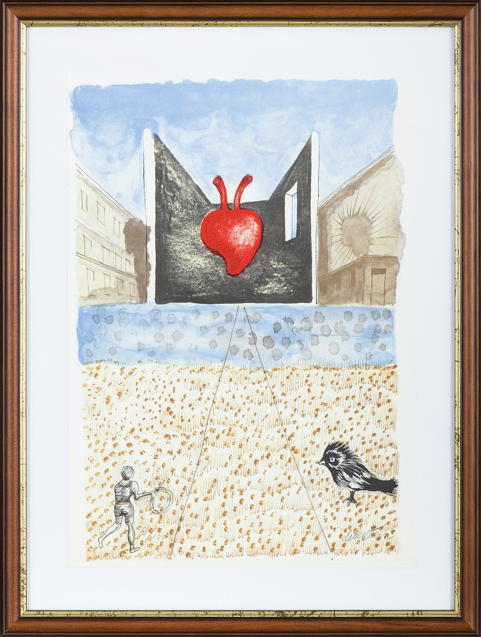 Jan Lebenstein (Brześć Litewski 1930 - Kraków 1999) w latach 1948-1954 studiował malarstwo w ASP w Warszawie pod kierunkiem prof. Eugeniusza Eibischa i Artura Nachta-Samborskiego. W 1955 wziął udział w wystawie w warszawskim Arsenale. Zaprzyjaźniony w czasie studiów z Mironem Białoszewskim, swą pierwszą wystawę indywidualną pokazał w 1956 w Teatrze na Tarczyńskiej. W 1959 zdobył Grand Prix de la Ville de Paris na I Biennale Młodych w Paryżu i w tym roku przeniósł się na stałe do Paryża. Po seriach "figur kreślonych" (na papierze milimetrowym) i "figur hieratycznych" z lat 1955-1958 maluje cykl "figur osiowych" (1958-1962), które wystawia w Paryżu i USA. Równolegle w 1960 zaczyna rysowane "karnety", rodzaj dziennika, który w przyszłości dostarczy motywów wykorzystanych w obrazach. W latach 1964-1965 maluje "Bestiarium", cykl fakturowych, archaizowanych stworów przypominających prehistoryczne wykopaliska. Bezpośrednio po nich wprowadza do swych obrazów postaci ludzkie i fantastyczne, odgrywające sceny ni to mitologiczne, ni to ze snu, często przesycone erotyką. W 1970 projektuje witraże dla Centre du Dialogue w Paryżu. W W 1971 otrzymuje obywatelstwo francuskie 1974 powstają gwasze inspirowane Folwarkiem zwierzęcym George'a Orwella. W latach 1976-1989 tworzy wyłącznie w technice gwaszu i pastelu, podejmując tematykę mitologiczną i zaczerpniętą z Biblii: cykle ilustracji do Księgi Hioba (wyd. 1979) i do Apokalipsy (wyd. 1986) w nowych przekładach Czesława Miłosza. W 1989 powraca do malarstwa olejnego (cykl "Pergamon"). Artysta otrzymał m. in. nagrodę Fundacji im. Alfreda Jurzykowskiego w 1976, Nagrodę Muzeum Archidiecezji Warszawskiej w 1985, Nagrodę im. Jana Cybisa w 1987.