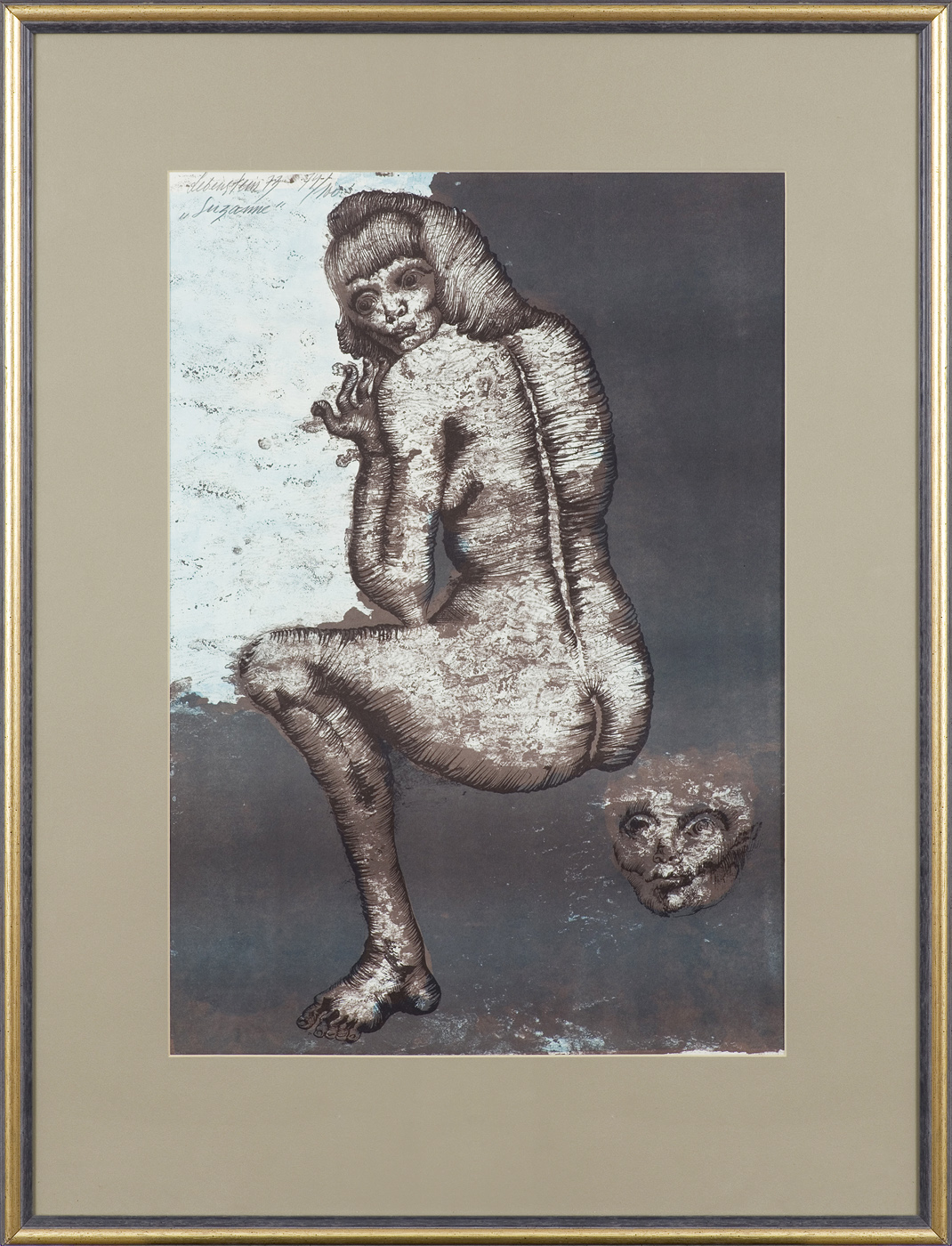 Jan Lebenstein (Brześć Litewski 1930 - Kraków 1999) w latach 1948-1954 studiował malarstwo w ASP w Warszawie pod kierunkiem prof. Eugeniusza Eibischa i Artura Nachta-Samborskiego. W 1955 wziął udział w wystawie w warszawskim Arsenale. Zaprzyjaźniony w czasie studiów z Mironem Białoszewskim, swą pierwszą wystawę indywidualną pokazał w 1956 w Teatrze na Tarczyńskiej. W 1959 zdobył Grand Prix de la Ville de Paris na I Biennale Młodych w Paryżu i w tym roku przeniósł się na stałe do Paryża. Po seriach "figur kreślonych" (na papierze milimetrowym) i "figur hieratycznych" z lat 1955-1958 maluje cykl "figur osiowych" (1958-1962), które wystawia w Paryżu i USA. Równolegle w 1960 zaczyna rysowane "karnety", rodzaj dziennika, który w przyszłości dostarczy motywów wykorzystanych w obrazach. W latach 1964-1965 maluje "Bestiarium", cykl fakturowych, archaizowanych stworów przypominających prehistoryczne wykopaliska. Bezpośrednio po nich wprowadza do swych obrazów postaci ludzkie i fantastyczne, odgrywające sceny ni to mitologiczne, ni to ze snu, często przesycone erotyką. W 1970 projektuje witraże dla Centre du Dialogue w Paryżu. W W 1971 otrzymuje obywatelstwo francuskie 1974 powstają gwasze inspirowane Folwarkiem zwierzęcym George'a Orwella. W latach 1976-1989 tworzy wyłącznie w technice gwaszu i pastelu, podejmując tematykę mitologiczną i zaczerpniętą z Biblii: cykle ilustracji do Księgi Hioba (wyd. 1979) i do Apokalipsy (wyd. 1986) w nowych przekładach Czesława Miłosza. W 1989 powraca do malarstwa olejnego (cykl "Pergamon"). Artysta otrzymał m. in. nagrodę Fundacji im. Alfreda Jurzykowskiego w 1976, Nagrodę Muzeum Archidiecezji Warszawskiej w 1985, Nagrodę im. Jana Cybisa w 1987.