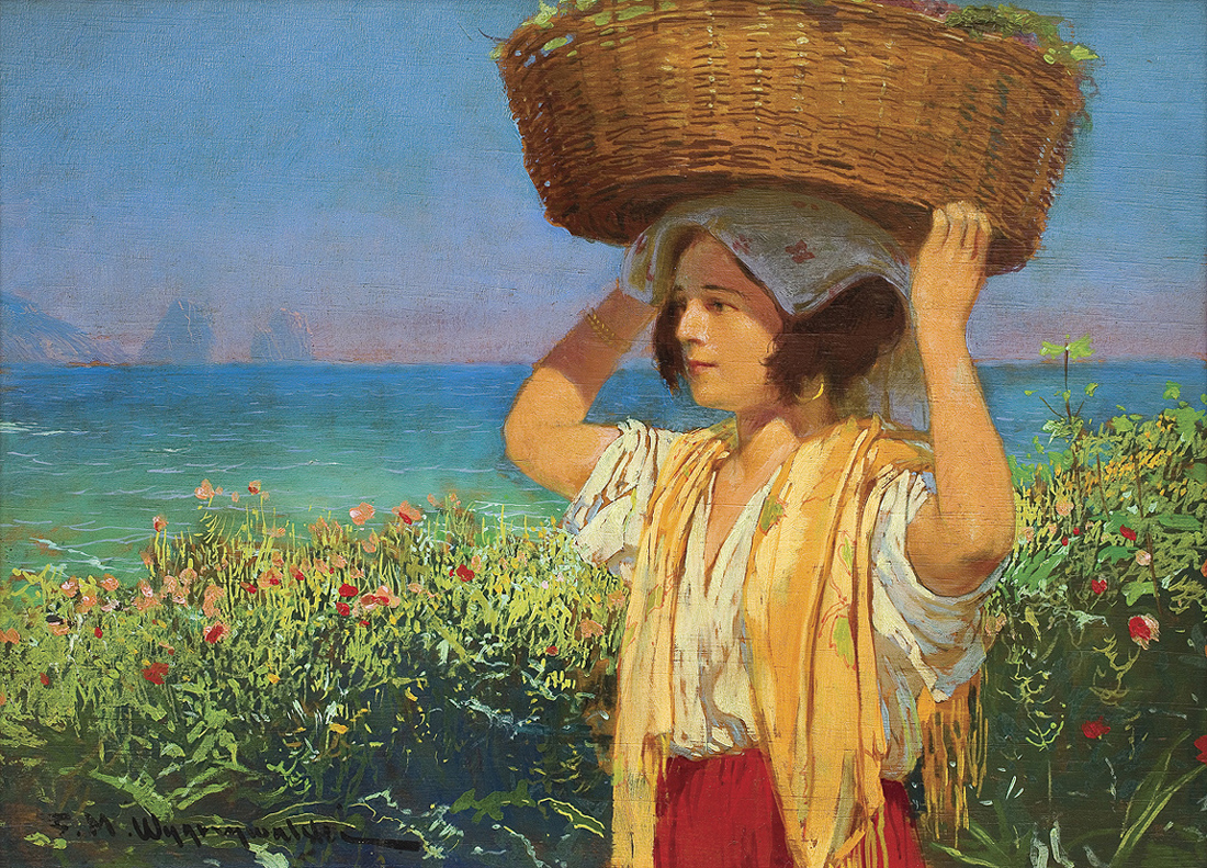 Feliks Michał Wygrzywalski (Przemyśl 1875 - okolice Rzeszowa 1944) w latach 1893-98 studiował w ASP w Monachium pod kierunkiem J.C.Hertericha i K.Marra. Studia uzupełniał w Académie Julian w Paryżu. Już w czasie studiów wyjeżdżał do Włoch, a po 1900 przez kilka lat mieszkał w Rzymie. W 1906 podróżował do Egiptu. W 1908 na stałe osiadł we Lwowie. W latach 1909-14 pracował w tamtejszym teatrze jako inspektor sceny. Jeszcze kilkakrotnie podróżował do Włoch. Był malarzem realistą; we wcześniejszym okresie twórczości skłaniał się ku naturalizmowi i silnej ekspresji. Dużą wagę przywiązywał do efektów świetlnych, stosował bogatą, żywą gamę barwną. We wczesnych obrazach często przedstawiał ludzką pracę (Burłacy) lub dramatyczne wydarzenia i napięcia społeczne (Strajk, Chleba nam głodnym). Malował też portrety, akty, pejzaże nadmorskie, krajobrazy z Włoch i Ukrainy. Po podróży do Egiptu w jego malarstwie powtarzały się motywy i tematy orientalne (Modlitwa Arabów, Sprzedawcy dywanów). Zajmował się dekoracyjnym malarstwem ściennym, m.in. w 1908 zaprojektował, a później wykonał alegoryczne malowidła do gmachu Izby Handlowo-Przemysłowej we Lwowie. Zajmował się grafiką, ilustrował książki i czasopisma, projektował witraże, kostiumy i dekoracje teatralne (m.in. do Peer Gynta, Irydiona, Nocy listopadowej).