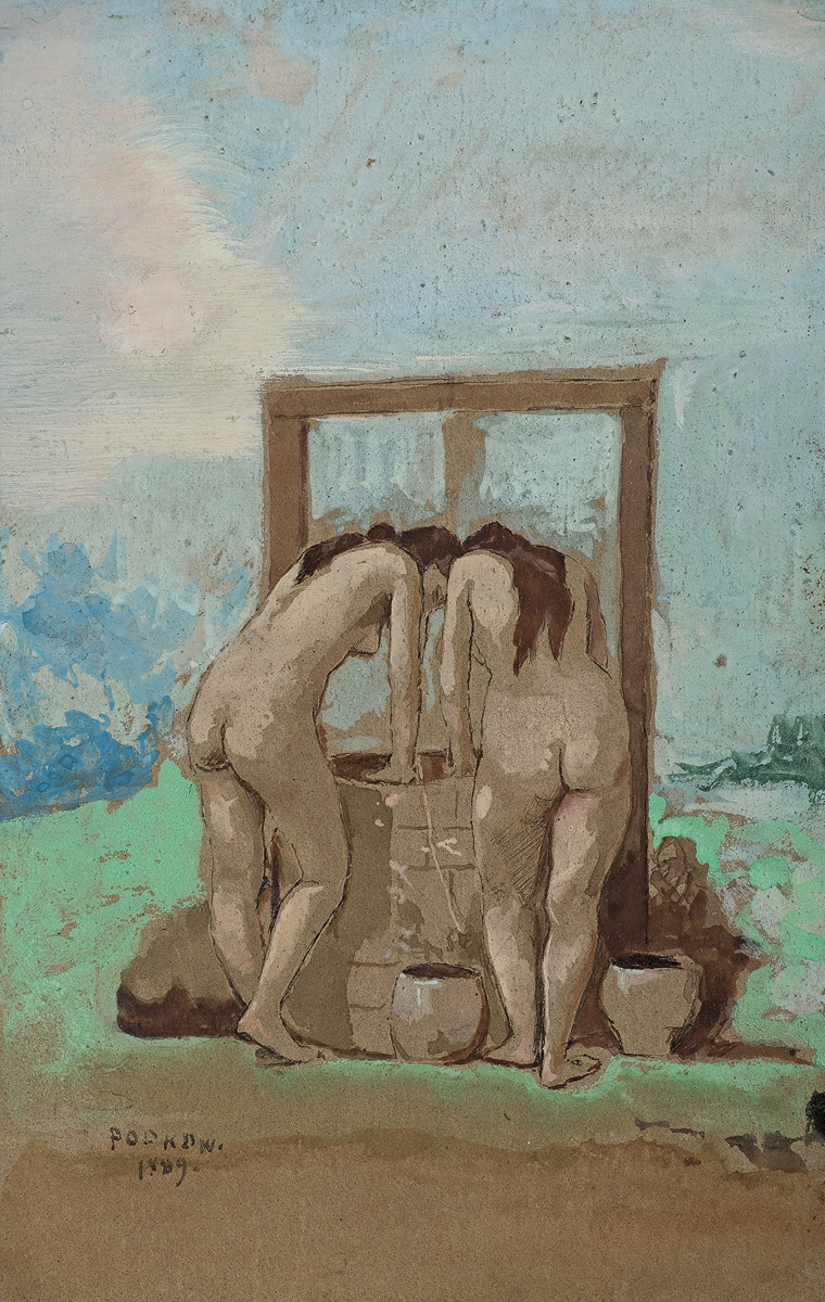 Władysław Podkowiński (Warszawa 1866 - Warszawa 1895) - malarz i rysownik, jeden z pierwszych polskich impresjonistów, znany jako autor głośnego obrazu Szał uniesień. Studia artystyczne rozpoczął w warszawskiej Klasie Rysunkowej u Wojciecha Gersona (1882-1885), następnie w roku akademickim 1885/1886 kontynuował je w Akademii petersburskiej u batalisty B.P. Willewaldego. Wróciwszy do Warszawy wynajął pracownię wspólnie z zaprzyjaźnionym Józefem Pankiewiczem. W roku 1889 obaj wyjechali do Paryża, gdzie zetknęli się z malarstwem impresjonistów, co oddziałało na ich późniejszą twórczość. Po powrocie do kraju (styczeń 1890) artysta przebywał w Warszawie i w wiejskich majątkach przyjaciół malarzy - w Chrzęsnem, w Mokrej Wsi, a także w Sobótce w Sandomierskiem.