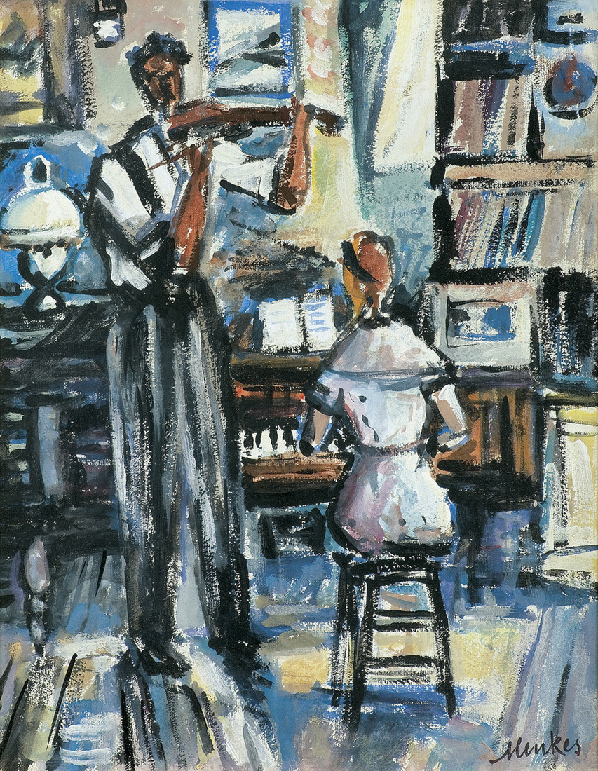 Zygmunt Menkes (Lwów 1896 - Riverdale, Nowy Jork 1986) naukę malarstwa rozpoczął pod kierunkiem Kazimierza Sichulskiego w lwowskiej Szkole Przemysłu Artystycznego. Następnie, w latach 1919-1922 studiował w krakowskiej Akademii Sztuk Pięknych u Wojciecha Weissa. W roku 1922 wyjechał do Berlina, gdzie poznał Aleksandra Archipenkę i korzystał z jego wskazówek. Od roku 1923 stale przebywał w Paryżu. Związany ze środowiskiem artystów École de Paris, przyjaźnił się, m.in. z E. Zakiem i M. Chagallem. Uczestniczył w Salonach Jesiennych, Niezależnych i Tuileries, wystawiał w wielu galeriach paryskich. Często przyjeżdżał do kraju; był członkiem lwowskiego ugrupowania Nowa Generacja i krakowskiego Zrzeszenia Artystów Plastyków Zwornik, uczestniczył w wystawach we Lwowie i w Warszawie. Wiele podróżował, m.in. w 1928 był w Berlinie, a w 1935 w Hiszpanii (razem z A. Nachtem-Samborskim). W 1935 wyjechał do Nowego Jorku, gdzie osiadł na stałe i gdzie w 1936 miał wystawę indywidualną. Przez lata współpracował z tamtejszymi galeriami sztuki i wykładał w Art Students League. Malował portrety, akty, kompozycje figuralne, martwe natury i pejzaże, a po 1940 także obrazy nawiązujące do martyrologii Żydów. Jego malarstwo ulegało różnym przemianom stylistycznym. W okresie paryskim obrazy artysty bliskie były nurtom ekspresjonizmu i fowizmu. W okresie powojennym ograniczał kolorystykę, wprowadzał mocną linię konturu, bogatą fakturę, a z czasem także coraz wyraźniejszą geometryzację form.