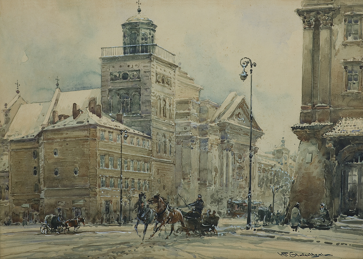 Władysław Chmieliński (Warszawa 1911 - Warszawa 1979) był malarzem związanym z Warszawą, gdzie stale mieszkał i pracował. W latach 1926-1931 studiował w warszawskiej Miejskiej Szkole Sztuk Zdobniczych i Malarstwa (dawna Klasa Rysunkowa). Wiodącym tematem jego obrazów były widoki miejskie, malowane olejno i akwarelą. W latach 1935-1938 stworzył cykl akwarel przedstawiających obiekty polskiej architektury; wśród nich, widoki Sandomierza, Krakowa, Kazimierza nad Wisłą, a także wnętrza zabytkowych kościołów czy pałaców, m.in. Zamku Królewskiego w Warszawie i Pałacu w Wilanowie. Malował także pejzaże i wiejskie sceny rodzajowe – kuligi, sanny, zaprzęgi, wesela, konie na tle krajobrazu. W latach 1967-1969 wyjeżdżał na dłuższe pobyty do Danii. W latach 1936-1939 artysta używał także pseudonimu „Władysław Stachowicz”.