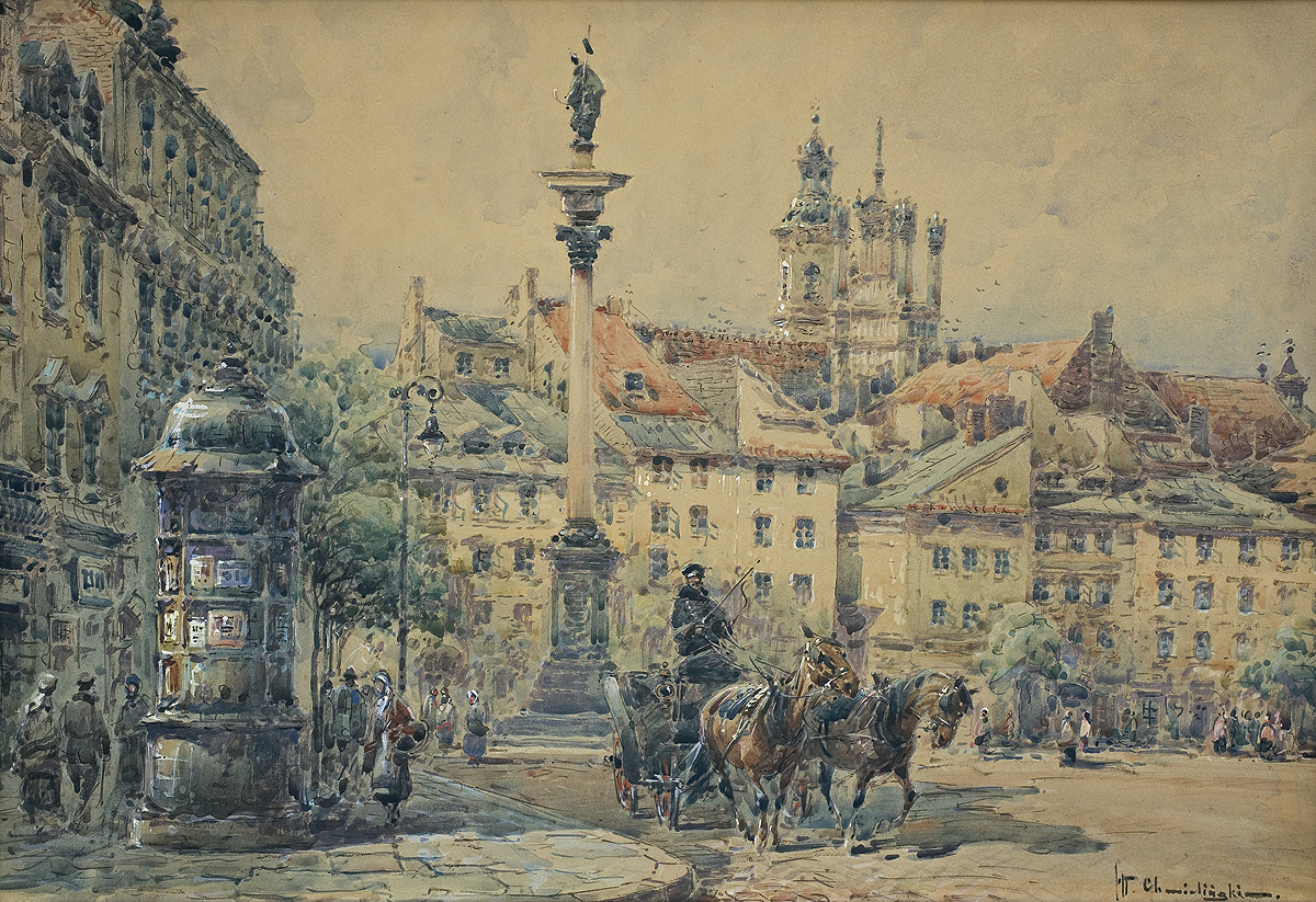Władysław Chmieliński (Warszawa 1911 - Warszawa 1979) był malarzem związanym z Warszawą, gdzie stale mieszkał i pracował. W latach 1926-1931 studiował w warszawskiej Miejskiej Szkole Sztuk Zdobniczych i Malarstwa (dawna Klasa Rysunkowa). Wiodącym tematem jego obrazów były widoki miejskie, malowane olejno i akwarelą. W latach 1935-1938 stworzył cykl akwarel przedstawiających obiekty polskiej architektury; wśród nich, widoki Sandomierza, Krakowa, Kazimierza nad Wisłą, a także wnętrza zabytkowych kościołów czy pałaców, m.in. Zamku Królewskiego w Warszawie i Pałacu w Wilanowie. Malował także pejzaże i wiejskie sceny rodzajowe – kuligi, sanny, zaprzęgi, wesela, konie na tle krajobrazu. W latach 1967-1969 wyjeżdżał na dłuższe pobyty do Danii. W latach 1936-1939 artysta używał także pseudonimu „Władysław Stachowicz”.