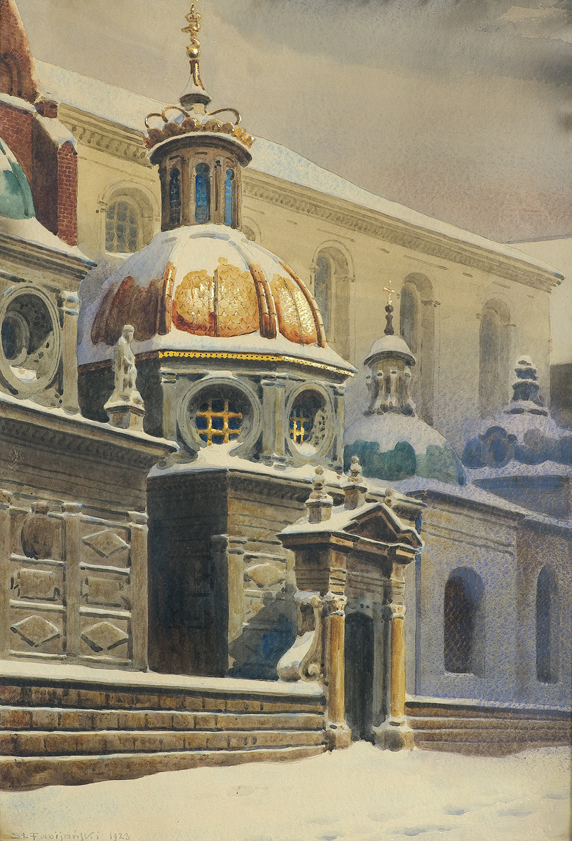 ZIMOWY WIDOK KATEDRY NA WAWELU Z KAPLICĄ ZYGMUNTO