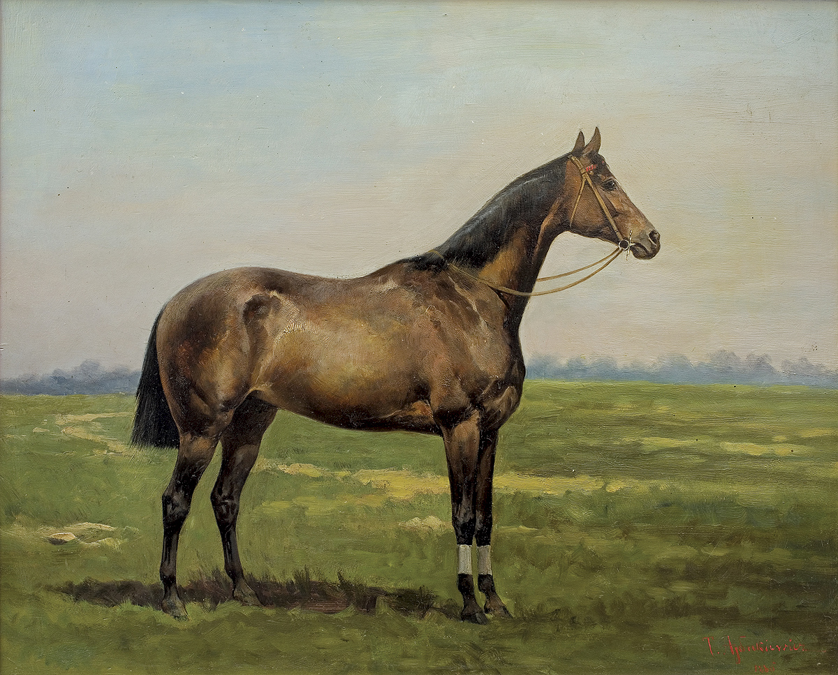 Tadeusz Ajdukiewicz (Bochnia 1851 - Kraków 1916) był artystą związanym z mecenatem arystokracji i dworów panujących; w tych kręgach zrobił prawdziwą karierę, a jego obrazy podobały się powszechnie. Studia malarskie rozpoczął w krakowskiej Szkole Sztuk Pięknych. Później kształcił się jeszcze w Wiedniu oraz w Monachium - w Akademii i w pracowni Józefa Brandta. Po studiach przez kilka lat jeździł po polskich dworach kresowych i malował portrety. Około 1877 wyjechał do Paryża, skąd, wraz z Władysławem Branickim wyjechał w – ważną dla jego przyszłej twórczości – podróż na Bliski Wschód. Około roku 1882 zamieszkał w Wiedniu, zajął pracownię po Hansie Makarcie (zm. 1884), malując dla dworu cesarskiego i arystokracji. W 1893 bawił w Londynie, gdzie, m.in. portretował księcia Walii, w 1894 pracował na dworze sułtańskim w Konstantynopolu, następnie także w Sofii, Petersburgu i Bukareszcie. W Rumunii osiadł na dłużej jako malarz nadworny Karola I. Po wybuchu I wojny światowej powrócił do kraju i, mimo starszego wieku, zaciągnął się do Legionów. Zmarł, nie wytrzymawszy trudów wojennych. Malował przede wszystkim portrety - zarówno reprezentacyjne, efektowne i eleganckie (Portret Heleny Modrzejewskiej, MNK), jak również skromne i kameralne. Tworzył też sceny myśliwskie, obrazy o tematyce wschodniej, bohaterskie sceny bitewne, rewie i przeglądy wojsk (Przegląd armii rumuńskiej, 1896).