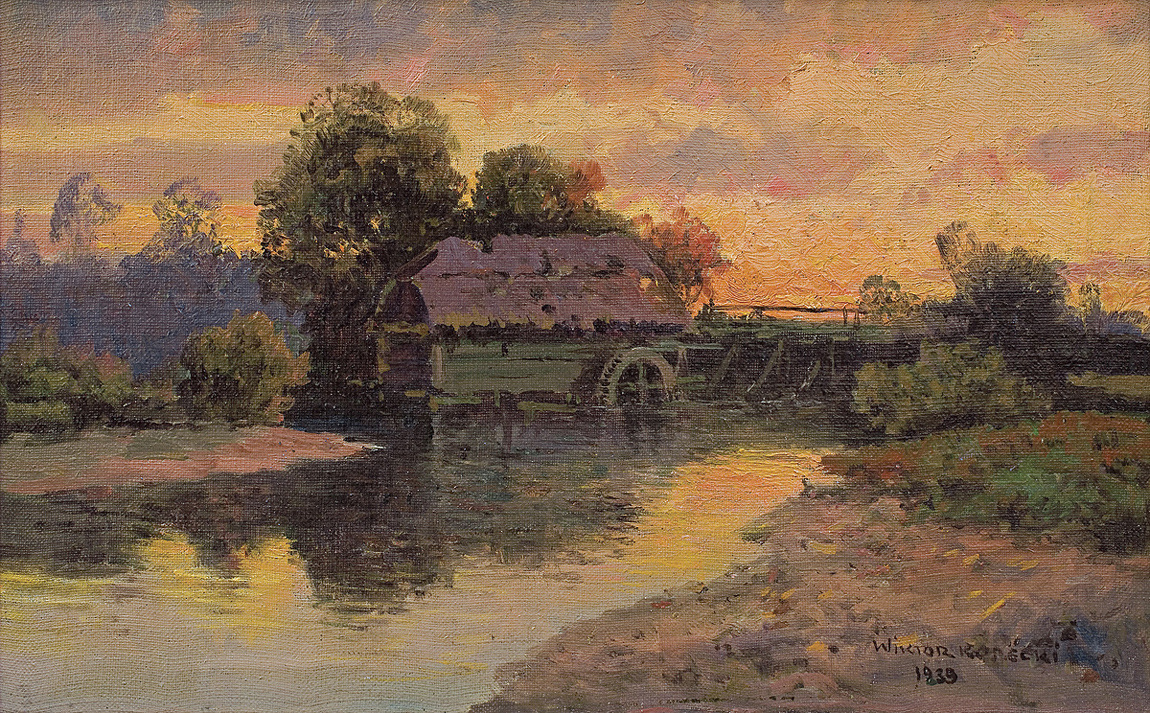 Wiktor Korecki (Kamieniec Podolski 1890 - Komorów k. Warszawy 1980) - malarz pejzażysta - gimnazjum ukończył w Kijowie, tam też studiował w Szkole Rysunkowej Aleksandra Muraszki. Po studiach wrócił do Kamieńca Podolskiego, skąd w roku 1921 wyjechał do Warszawy. Tu miał pracownię na rogu ulic Tamki i Cichej. Niestety zgromadzone tam obrazy spłonęły w czasie powstania 1944 roku. Po powstaniu artysta przebywał w obozie w Pruszkowie skąd trafił do obozu pracy w Lipsku. Do kraju powrócił w roku 1946 i zamieszkał w Komorowie pod Warszawą, a później w Milanówku. Jego nastrojowe krajobrazy emanujące spokojem i pogodą cieszyły się zawsze dużą popularnością. Korecki najczęściej malował pejzaże zimowe z motywem leśnej drogi i strumienia wijącego się wśród śniegów, a obok nich także wiosenne, letnie czy jesienne widoki z Mazowsza.