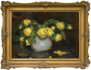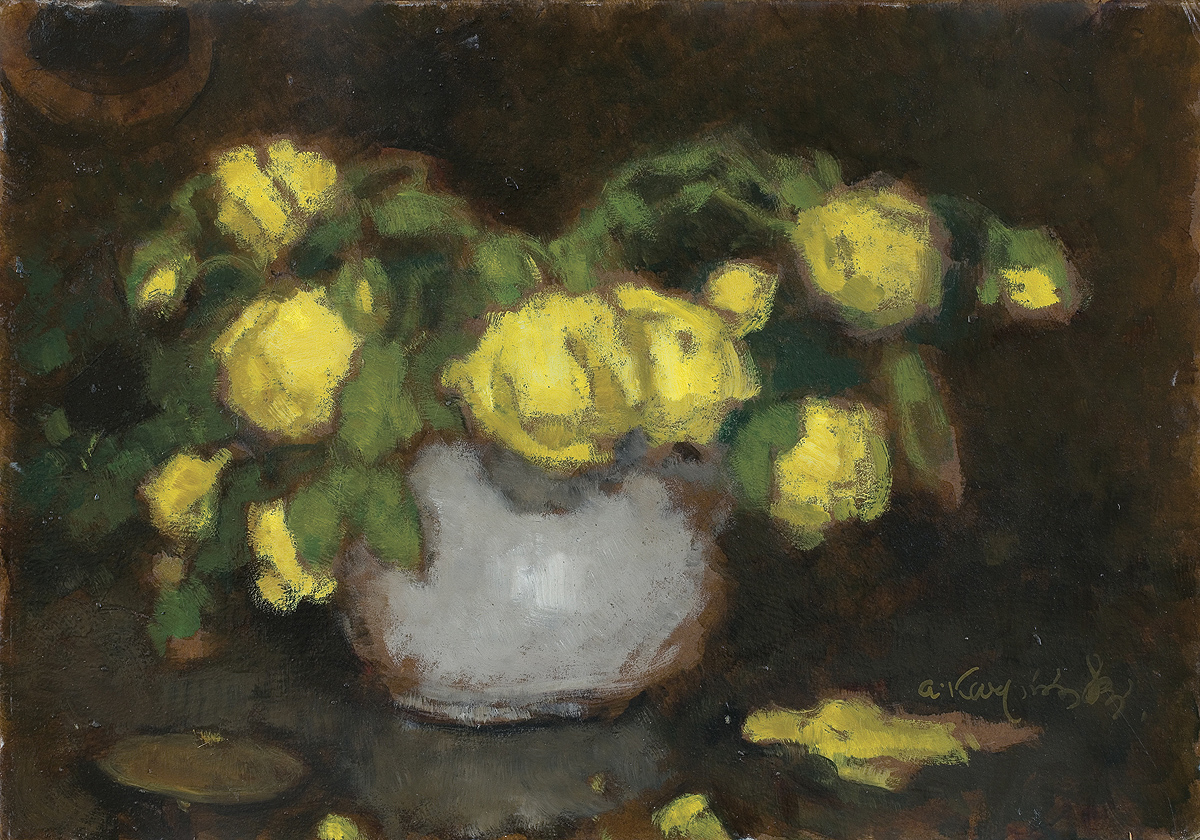 Alfons Karpiński (Rozwadów, dziś dzielnica Stalowej Woli 1875 - Kraków 1961) w latach 1891-1899 studiował w krakowskiej Szkole Sztuk Pięknych pod kierunkiem Floriana Cynka, Izydora Jabłońskiego, Władysława Łuszczkiewicza i Leona Wyczółkowskiego, a następnie kształcił się jeszcze u Antona Ažbégo w Monachium (1903), u Kazimierza Pochwalskiego w Wiedniu, a od 1907 także w Paryżu. Podróżował do Włoch i Londynu. Stale mieszkał w Krakowie; związany z tamtejszym środowiskiem skupionym wokół „Zielonego Balonika” projektował dekoracje do przedstawień kabaretu. Należał do Tow. Artystów Polskich „Sztuka”, grupy „Zero”, był członkiem wiedeńskiego stowarzyszenia „Secesja” i krakowskiego TPSP. Uczestniczył w wielu wystawach w kraju i za granicą. W czasie I wojny światowej służył w armii austriackiej. Na bogatą twórczość artysty składają się wczesne sceny rodzajowe z podkrakowskiej wsi, pejzaże i portrety, wśród nich zwłaszcza portrety kobiece, które przyniosły mu szczególną popularność. Z czasem głównym – obok portretu – tematem jego obrazów stały się martwe natury z kwiatami, dekoracyjne kompozycje o stonowanej gamie barwnej. Artysta zajmował się także grafiką i ilustratorstwem.