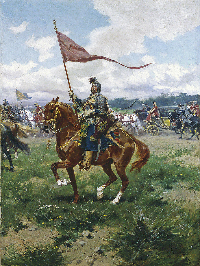 Józef Brandt (Szczebrzeszyn 1841 - Radom 1915) był jednym z najwybitniejszym polskich malarzy batalistów. Naukę malarstwa rozpoczął w Warszawie pod okiem Juliusza Kossaka. W latach 1858-1860 był w Paryżu, gdzie podjął studia inżynierskie. Niebawem zarzucił je jednak na rzecz malarstwa i kształcił się w pracowni Leona Cognieta. Po powrocie do kraju, w 1861 debiutował na wystawie w warszawskim TZSP. Od 1863 kontynuował studia w monachijskiej ASP u Franza Adama. W 1870 otworzył w Monachium własną pracownie i niebawem stał się przywódcą, „generałem” tamtejszej polskiej kolonii artystycznej i nauczycielem wielu malarzy. Po 1877 miesiące letnie spędzał w Orońsku, zapraszając na plenery grono swych uczniów. Został honorowym profesorem Akademii w Monachium (1878), członkiem Akademii w Berlinie (1877) i Pradze (1900). Odznaczony wysokimi orderami, wyróżniany medalami i nagrodami na międzynarodowych wystawach, cieszył się prawdziwie europejską sławą. Mieszkając i tworząc poza krajem zawsze wyraźnie podkreślał swoją polskość; dając jej wyraz choćby poprzez podpisywanie obrazów Józef Brandt z Warszawy. Malował bitwy, potyczki, podjazdy – epizody z historii polskich wojen kresowych i wojen szwedzkich XVII wieku, a także sceny rodzajowe – jeźdźców, polowania, jarmarki. Jego barwne, pełne ruchu i perfekcyjne warsztatowo obrazy podziwiano powszechnie, jako najlepszy przykład wysoko wówczas cenionej „szkoły polskiej”. Ale podczas gdy niemiecki czy francuski widz dostrzegał w nich przede wszystkim egzotykę i barwy Orientu, dla Polaków były to płótna „prawdziwe, naturalne, swojskie jak fragmenty z pamiętników Paska albo Rzewuskiego, przetransponowane na barwy i linie”. |