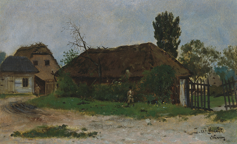 Józef Brandt (Szczebrzeszyn 1841 - Radom 1915) był jednym z najwybitniejszym polskich malarzy batalistów. Naukę malarstwa rozpoczął w Warszawie pod okiem Juliusza Kossaka. W latach 1858-1860 był w Paryżu, gdzie podjął studia inżynierskie. Niebawem zarzucił je jednak na rzecz malarstwa i kształcił się w pracowni Leona Cognieta. Po powrocie do kraju, w 1861 debiutował na wystawie w warszawskim TZSP. Od 1863 kontynuował studia w monachijskiej ASP u Franza Adama. W 1870 otworzył w Monachium własną pracownie i niebawem stał się przywódcą, „generałem” tamtejszej polskiej kolonii artystycznej i nauczycielem wielu malarzy. Po 1877 miesiące letnie spędzał w Orońsku, zapraszając na plenery grono swych uczniów. Został honorowym profesorem Akademii w Monachium (1878), członkiem Akademii w Berlinie (1877) i Pradze (1900). Odznaczony wysokimi orderami, wyróżniany medalami i nagrodami na międzynarodowych wystawach, cieszył się prawdziwie europejską sławą. Mieszkając i tworząc poza krajem zawsze wyraźnie podkreślał swoją polskość; dając jej wyraz choćby poprzez podpisywanie obrazów Józef Brandt z Warszawy. Malował bitwy, potyczki, podjazdy – epizody z historii polskich wojen kresowych i wojen szwedzkich XVII wieku, a także sceny rodzajowe – jeźdźców, polowania, jarmarki. Jego barwne, pełne ruchu i perfekcyjne warsztatowo obrazy podziwiano powszechnie, jako najlepszy przykład wysoko wówczas cenionej „szkoły polskiej”. Ale podczas gdy niemiecki czy francuski widz dostrzegał w nich przede wszystkim egzotykę i barwy Orientu, dla Polaków były to płótna „prawdziwe, naturalne, swojskie jak fragmenty z pamiętników Paska albo Rzewuskiego, przetransponowane na barwy i linie”. |