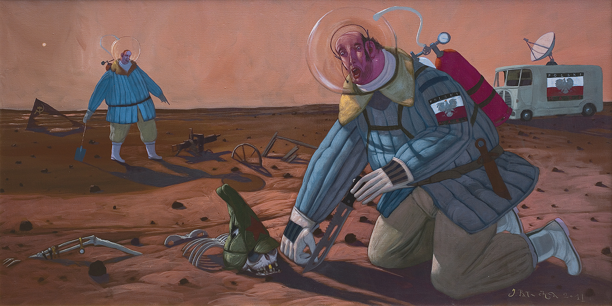 Jacek Pałucha (Częstochowa 1966, mieszka w Częstochowie) studiował na Wydziale Malarstwa ASP w Warszawie, uzyskując w 1993 dyplom w pracowni prof. Wiesława Szamborskiego. Równolegle był założycielem i liderem zespołów: "Formacja Nieżywych Schabuff", "Furmanka", "Superpałka i najeźdźcy z kosmosu", autorem tekstów i muzyki ich piosenek. Projektował również okładki i oprawę graficzną płyt i wydawnictw dla wyżej wymienionych zespołów, a także m. in. dla "Kultu". Jest autorem ilustracji do książki Grażyny Treli "Dobry mężczyzna to martwy mężczyzna". Grał główną rolę w filmie Łukasza Wylężałka "Balanga". Wystawia od 1993 w kraju i za granicą. Stylistyka i tematyka jego obrazów, zbliżona typem humoru do twórczości Jerzego Dudy-Gracza, zjednała mu popularność wśród zwolenników sztuki przedstawiającej, anegdotycznej i prześmiewczej wobec przywar współczesnego człowieka.