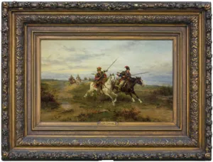 Ludwik Gędłek (Kraków 1847 - Wiedeń 1904) rozpoczął studia artystyczne w krakowskiej Szkole Sztuk Pięknych pod kierunkiem Władysława Łuszczkiewicza, a w latach 1872-1877 kontynuował je w Akademii wiedeńskiej u Eduarda Lichtenfelsa i Carla Wurzingera. Już w roku 1863 debiutował na wystawie w krakowskim TPSP, gdzie później wystawiał jeszcze kilkakrotnie. Stale mieszkał w Wiedniu, skąd wysyłał obrazy także na wystawy do TPSP we Lwowie, do Salonu Aleksandra Krywulta w Warszawie oraz do Drezna. Malował przede wszystkim sceny rodzajowe i batalistyczne z częstym motywem koni, a także krajobrazy, głównie z okolic Krakowa. Obrazy artysty znajdują się, m.in. w Muzeum Narodowym w Warszawie, Lwowskiej Galerii Obrazów i Polskim Muzeum w Chicago