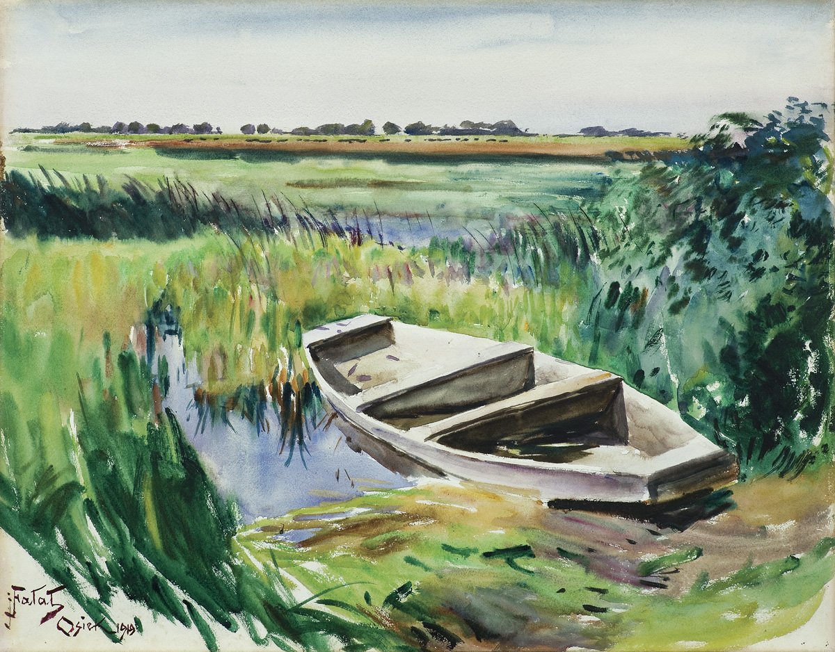 Julian Fałat (Tuligłowy [okręg lwowski] 1853 - Bystra k. Bielska 1929) - malarz i pedagog - jeden z najwybitniejszych artystów polskich okresu przełomu XIX i XX wieku, członek polskich i europejskich stowarzyszeń twórczych oraz Królewskiej Akademii Sztuk Pięknych w Berlinie, wielokrotnie odznaczany medalami na wystawach międzynarodowych. Studiował malarstwo u Władysława Łuszczkiewicza i Leona Dembowskiego w Szkole Sztuk Pięknych w Krakowie (1868-71 i 1881) i w Akademii Sztuk Pięknych w Monachium u Alexandra Strähubera i Johana Leonhardta Raaba (1877-80). Po studiach spędził kilka miesięcy w Rzymie, w 1884 był w Paryżu i w Hiszpanii, a w 1885 odbył podróż morską dookoła świata. W 1886 podczas polowania u ks. Radziwiłłów w Nieświeżu poznał późniejszego cesarza Niemiec Wilhelma II - dla którego następnie w latach 1886-95 pracował w Berlinie jako malarz nadworny. W latach 1894-96 współpracował z Wojciechem Kossakiem przy panoramie Berezyna. W 1895 został powołany na stanowisko dyrektora Szkoły Sztuk Pięknych w Krakowie, w której gruntownie zreformował system nauczania, przekształcając tę uczelnię w nowoczesną Akademię Sztuk Pięknych (r.1900). Do roku 1910 był rektorem Akademii; po przejściu na emeryturę osiadł w miejscowości Bystra k. Bielska. Znakomity akwarelista, malował także olejno. We wcześniejszym okresie tworzył w konwencji realistycznej, z czasem rozjaśnił i wzbogacił paletę, a w akwarelach wprowadzał rozlewną plamę barwną. Zasłynął jako malarz scen myśliwskich rozgrywających się najczęściej w zimowej scenerii; malował też pejzaże, wiejskie sceny rodzajowe, portrety, widoki miejskie.
