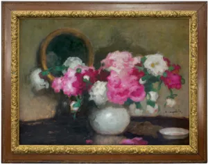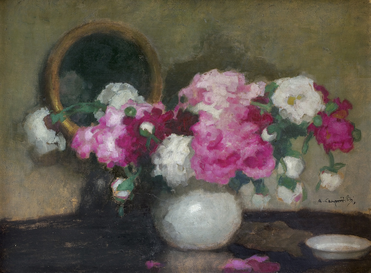 Alfons Karpiński (Rozwadów, dziś dzielnica Stalowej Woli 1875 - Kraków 1961) w latach 1891-1899 studiował w krakowskiej Szkole Sztuk Pięknych pod kierunkiem Floriana Cynka, Izydora Jabłońskiego, Władysława Łuszczkiewicza i Leona Wyczółkowskiego, a następnie kształcił się jeszcze u Antona Ažbégo w Monachium (1903), u Kazimierza Pochwalskiego w Wiedniu, a od 1907 także w Paryżu. Podróżował do Włoch i Londynu. Stale mieszkał w Krakowie; związany z tamtejszym środowiskiem skupionym wokół „Zielonego Balonika” projektował dekoracje do przedstawień kabaretu. Należał do Tow. Artystów Polskich „Sztuka”, grupy „Zero”, był członkiem wiedeńskiego stowarzyszenia „Secesja” i krakowskiego TPSP. Uczestniczył w wielu wystawach w kraju i za granicą. W czasie I wojny światowej służył w armii austriackiej. Na bogatą twórczość artysty składają się wczesne sceny rodzajowe z podkrakowskiej wsi, pejzaże i portrety, wśród nich zwłaszcza portrety kobiece, które przyniosły mu szczególną popularność. Z czasem głównym – obok portretu – tematem jego obrazów stały się martwe natury z kwiatami, dekoracyjne kompozycje o stonowanej gamie barwnej. Artysta zajmował się także grafiką i ilustratorstwem.
