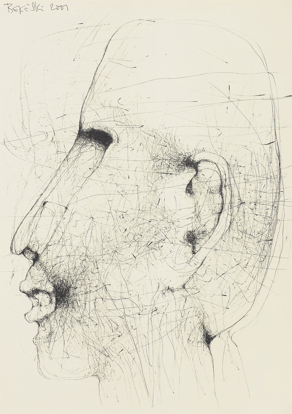 Zdzisław Beksiński (Sanok 24 II 1929 - Warszawa 21 II 2005) studiował w latach 1947-1952 na Wydziale Architektury Politechniki Krakowskiej. Był artystą samoukiem, który osiągnął niekwestionowaną pozycję w polskiej sztuce współczesnej, potwierdzoną obecnością jego prac na prestiżowych wystawach i w kolekcjach muzealnych. Początkowo zajmował się fotografią, którą interesował się od lat studenckich, po 1956 zyskując uznanie jako twórca fotogramów o estetyce opartej o efekty fakturowe. W latach 1958-1962 tworzył abstrakcyjne obrazy-reliefy o bogatej fakturze, głównie metalowe, będące odmianą malarstwa materii. Pod koniec tego okresu powstawały ażurowe formy o kształtach figur i pełnoplastyczne rzeźby w metalu. Kolejnym etapem jego twórczości były lata 1962-1974, kiedy poświęcał się głównie rysunkowi. W latach 60. rysował piórkiem i tuszem figuralne kompozycje odznaczające się karykaturalną deformacją postaci. Od końca lat 60. tworzył rysunki węglem i kredkami, będące monochromatyczną odmianą jego równoległej twórczości malarskiej. Od 1974 zajmował się niemal niepodzielnie malarstwem. Jego charakterystyczny styl bazował na perfekcji technicznej, której towarzyszyła niezwykłość wizji. Malował świat po katastrofie, naznaczony piętnem śmierci i rozpadu. Jego obrazy zaludniają postaci i stwory o ludzkich wprawdzie bądź zwierzęcych kształtach, lecz o cechach fantomów, automatów lub rozpadających się trucheł. Artysta nie nadawał swym obrazom i rysunkom tytułów (poza porządkującymi symbolami), akcentując w ten sposób swój brak zainteresowania dla literackiej strony przedstawień. Sam mówił, że malując całkowicie poddaje się wizji, „fotografuje“ ją. W ostatnich latach włączył do swego warsztatu artystycznego elektroniczne techniki generowania obrazu, które wykorzystywał do tworzenia komputerowych fotomontaży. Sztuka Beksińskiego, wielokrotnie wystawiana i omawiana, budzi skrajne emocje wśród znawców i publiczności.