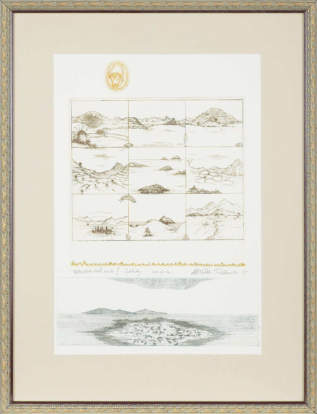 sygn. oł. między środkową a dolną od l.: 22/30 Notatnik grecki II - Cyklady - akwaforta - M. Okołów