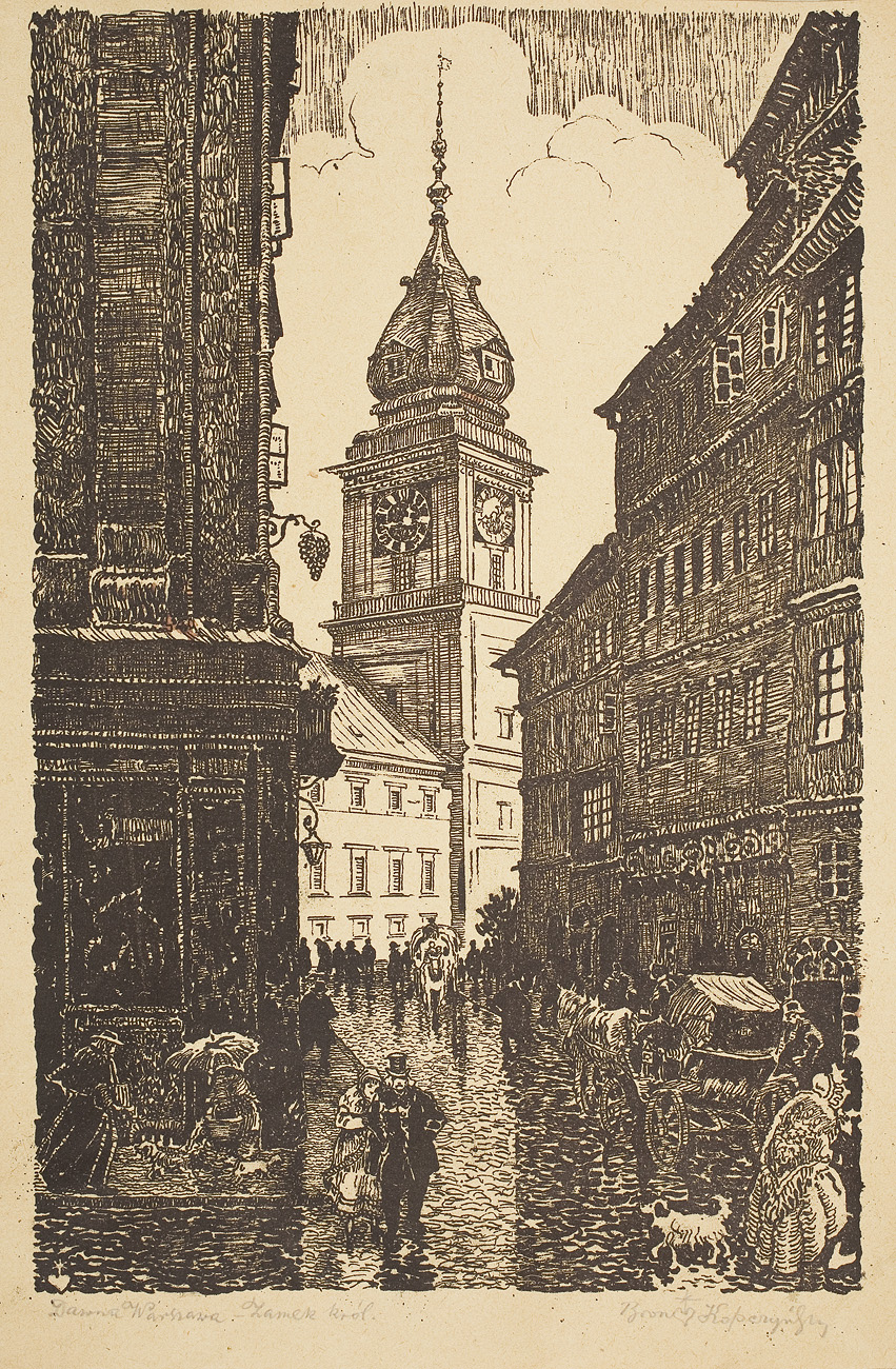 Bronisław Kopczyński (1882 Warszawa - 1964Warszawa) - malarz i grafik. Od około 1895 uczył się rysunku w Muzeum Rzemiosł i Sztuki Stosowanej, gdzie korzystał z rad Wojciecha Gersona. W latach 1902-05 studiował malarstwo w Krakowie u Józefa Unierzyskiego i Teodora Axentowicza; później u Leona Wyczółkowskiego (semestr 1911-12), Jacka Malczewskiego oraz grafikę u Jana Wojnarowskiego. W 1906 zamieszkał na stałe w Warszawie, gdzie czynnie uczestniczył w życiu artystycznym miasta i wiele wystawiał. Należał do stowarzyszenia artystycznego Pro Arte oraz od 1918 był członkiem TZSP. Głównym motywem jego prac była zabytkowa architektura, malował także pejzaże i zajmował się grafiką.