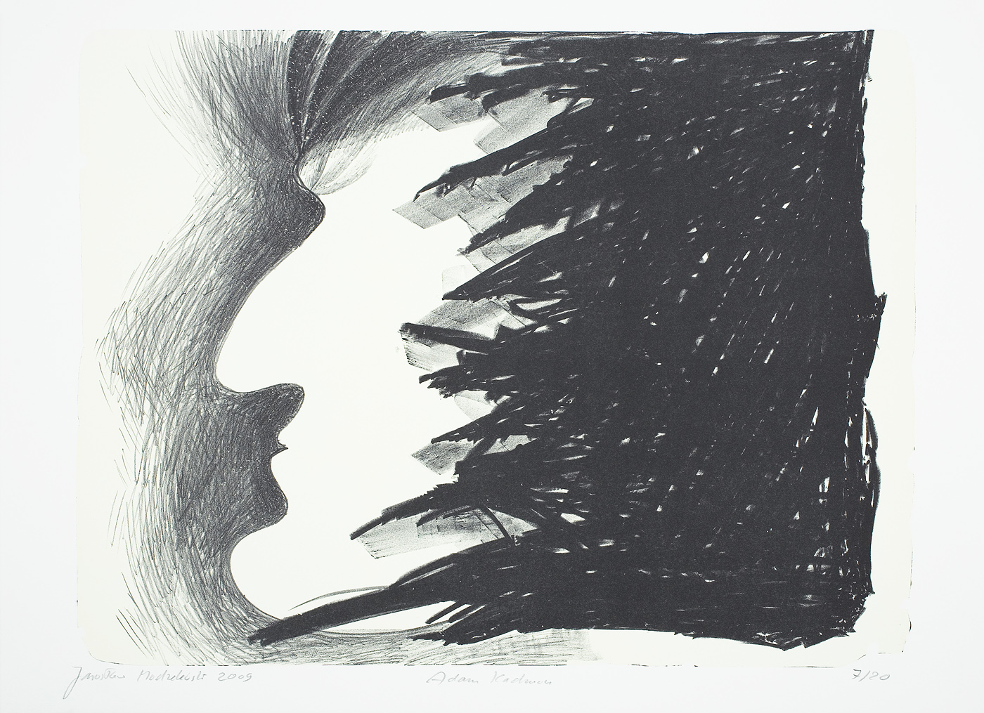 Jarosław Modzelewski (Warszawa 1955, mieszka w Warszawie) studiował malarstwo w ASP w Warszawie w latach 1975-1980, uzyskując dyplom w pracowni Stefana Gierowskiego. Od 1982 pracuje jako pedagog na macierzystym wydziale. W 1982 był współzałożycielem „Gruppy”, najważniejszego ugrupowania nurtu nowej ekspresji lat 80., działającego do 1992. W latach 1991-1996 wspólnie z Markiem Sobczykiem prowadził prywatną Szkołę Sztuki w Warszawie. Od wielu lat współpracuje z Galerią Zderzak w Krakowie. W początkowym okresie twórczości skłaniał się ku abstrakcji, wykorzystywał uproszczone znaki i emblematy oraz sylwetki odbite z szablonu. W 1985 namalował cykl oparty na ilustracjach do podręczników języka rosyjskiego, obrazujący proste czynności, których czasownikowe określenia stanowią tytuły prac. W 1986-1989 powstawały obrazy utrzymane w konwencji realistycznej, jednak zarazem o surrealnej atmosferze uzyskiwanej różnymi metodami, np. przez dublowanie figur, ukazywanie postaci w sytuacji niepewności czy zagrożenia, zabiegi z przestrzenią. W grupie obrazów z 1988 artysta rezygnuje z postaci ludzkiej na rzecz wyjątkowego nasycenia emocją samej przestrzeni pejzaży i wnętrz. Około 1990 wraca do kompozycji akcentujących czynności wykonywane przez postaci, które często umieszczone są w pustej, zaledwie zasugerowanej, acz dominującej przestrzeni. Odrealnienia i monumentalności dodaje tym obrazom płaskie i rozległe kładzenie koloru.
