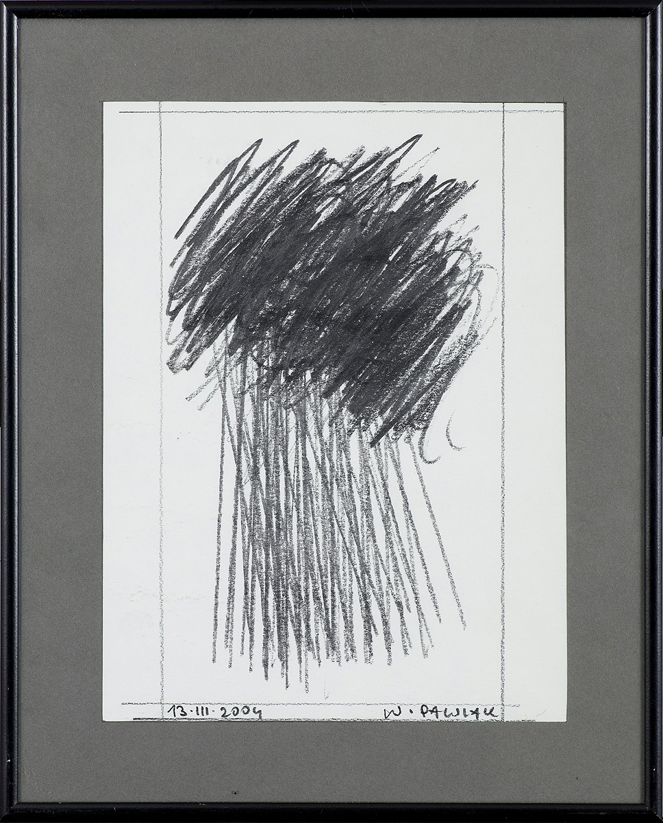 Włodzimierz Pawlak (Korytów k. Żyrardowa 1957, mieszka w Korytowie) studiował Wydziale Malarstwa ASP w Warszawie w pracowni prof. Rajmunda Ziemskiego, u którego uzyskał dyplom w 1985. Był już wtedy członkiem Gruppy, najważniejszego ugrupowania młodych neoekspresjonistów, zawiązanego w końcu 1982 i działającego do 1992. Od 1986 uczy malarstwa na Wydziale Wzornictwa Przemysłowego macierzystej uczelni. Jako członek Gruppy wpisywał się w szerszy nurt niezależnego życia artystycznego lat 80., dając niejednokrotnie wyraz swym poglądom na sprawy polityczne i społeczne okresu stanu wojennego. Czynił to w poezji i pismach teoretycznych (publikowanych głównie na łamach pisma Gruppy „Oj dobrze już“), ale przede wszystkim w malarstwie. Początkowo sięgał po jednoznaczne symbole i metafory jak w cyklu „Świnie“ (1983) czy w obrazach z motywem pięcioramiennej gwiazdy. Cykl obrazów dyplomowych pt. „Obrazy zamalowane“ (1985) zastosował zabieg nakładania warstw farby. Było to oryginalnym przeniesieniem i utrwaleniem w sztuce charakterystycznego motywu zamalowanych politycznych ha-seł na murach. Swego rodzaju wolty formalnej dokonał w cyklu „Tablice dydaktyczne“ (1987-1988), gdzie poszczególne warstwy przedstawienia są przezroczyste. Od 1989 tworzy jednorodne formalnie, niefiguratywne „Dzienniki“, które w wersji malarskiej powstają w wyniku rycia ołówkiem rzędów pionowych kresek w świeżej białej farbie. Równolegle powstają collages pod tym samym tytułem, składane z zużytych przedmiotów: tubek po farbach, zestruganych ołówków, biletów, rachunków itp. Wątkiem, który narasta od połowy lat 90., jest zainteresowanie sztuką i teorią konstruktywistów polskich i rosyjskich: Katarzyny Kobro, Władysława Strzemińskiego, Kazimierza Malewicza i innych. Artysta eksponował ostatnio cykl studiów formalnych i kolorystycznych, wynikających częściowo z tych zainteresowań, a częściowo już z własnego dorobku teoretycznego, pt. Przestrzeń logiczna obrazu z 2002 roku.