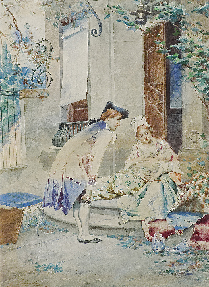 Virgilio Colombo - artysta włoski, malarz akwarelista, krytyk sztuki; malował pogodne, często kostiumowe sceny rodzajowe. W roku 1889 wziął udział w wystawie w Mediolanie; w 1890 jego akwarela pt. Kostium pokazana została na wystawie w Towarzystwie Zachęty Sztuk Pięknych w Warszawie.