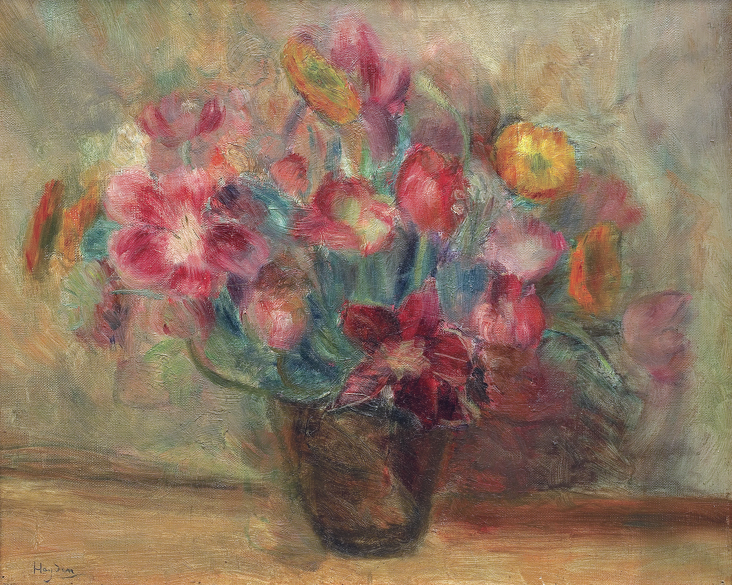 Henryk Hayden (Warszawa 1883 - Paryż 1970) był jednym z najwybitniejszych malarzy polskiego pochodzenia związanych ze środowiskiem École de Paris. Studia artystyczne rozpoczął w warszawskiej Szkole Sztuk Pięknych; równolegle kształcił się także na Politechnice Warszawskiej. W 1907 wyjechał do Paryża, gdzie zapisał się jeszcze do Académie „La Palette”. Od 1908 często wyjeżdżał do Bretanii, kontaktując się tam z W. Ślewińskim. Po 1915 związał się z kręgiem paryskiej awangardy artystycznej, m.in. P. Picassem, J. Grisem, G. Severinim czy H. Matisseem. We Francji pozostał na stałe. W 1920 odwiedził rodzinę w Polsce, ale jego związki z krajem były dość luźne – z rzadka tylko przesyłał obrazy na wystawy. Wiele natomiast wystawiał we Francji; od 1909 regularnie brał udział w paryskich Salonach, miał też wystawy indywidualne. W czasie II wojny światowej przebywał w południowej Francji i wówczas nawiązała się jego wieloletnia przyjaźń z S. Beckettem. Malował pejzaże, portrety i martwe natury, wykazujące początkowo związki z malarstwem Ślewińskiego, a później (1912-21) twórczością Cezanne’a i kubizmem. Po roku 1922 tworzył realistyczne portrety i pejzaże; pod koniec życia powrócił do doświadczeń kubistycznych.