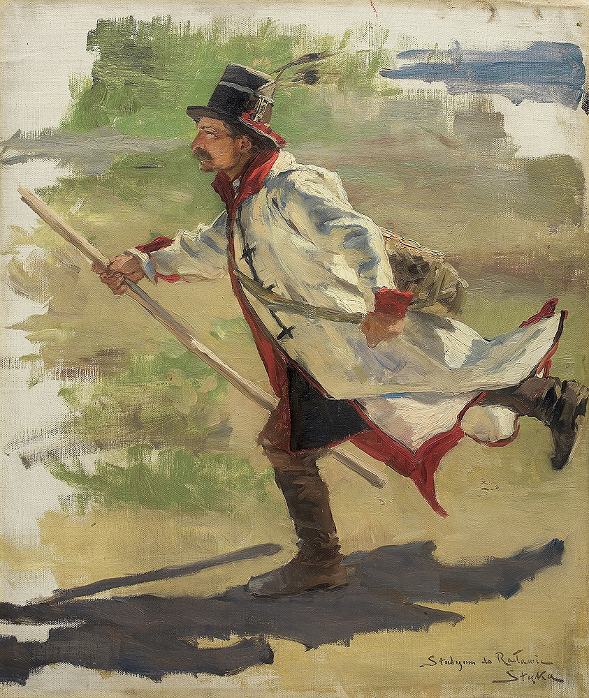 Jan Styka (Lwów 1858 - Rzym 1925) - popularny malarz scen historycznych i batalistycznych, autor obrazów alegorycznych i religijnych, portrecista, ojciec malarzy Tadeusza i Adama Styków. Studiował w Akademii Sztuk Pięknych w Wiedniu, następnie w Rzymie, a w latach 1882-1885 u Jana Matejki w Szkole Sztuk Pięknych w Krakowie. Po studiach spędził kilka lat w Paryżu, później mieszkał we Lwowie. W roku 1895 podróżował do Palestyny. Po 1900 stale mieszkał w Paryżu, skąd wyjeżdżał do Stanów Zjednoczonych, Włoch i Grecji. Uczestnik wielu wystaw, m.in. paryskich Salonów czy Wystawy Światowej w St. Louis (1904), cieszył się znaczną popularnością, a nawet sławą. Był członkiem Akademii Św. Łukasza w Rzymie. Był również pomysłodawcą i współtwórcą sławnych panoram - eksponowanej dziś stale we Wrocławiu Panoramy bitwy pod Racławicami (lata 1892-1894; wraz W. Kossakiem i innymi), Golgoty (1896; obecnie w Los Angeles), Panoramy Siedmiogrodzkiej (1897; pocięta na części, zachowały się tylko fragmenty), i Męczeństwa Chrześcijan w cyrku Nerona (1899; płótno zaginione podczas pierwszej wojny światowej). Zajmował się ilustratorstwem, m.in. przygotował ilustracje do luksusowego wydania Quo vadis? Sienkiewicza.