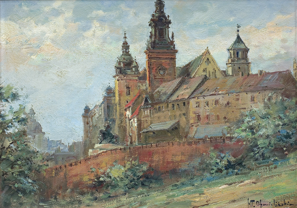 Władysław Chmieliński (Warszawa 1911 - Warszawa 1979) był malarzem związanym z Warszawą, gdzie stale mieszkał i pracował. W latach 1926-1931 studiował w warszawskiej Miejskiej Szkole Sztuk Zdobniczych i Malarstwa (dawna Klasa Rysunkowa). Wiodącym tematem jego obrazów były widoki miejskie, malowane olejno i akwarelą. W latach 1935-1938 stworzył cykl akwarel przedstawiających obiekty polskiej architektury; wśród nich, widoki Sandomierza, Krakowa, Kazimierza nad Wisłą, a także wnętrza zabytkowych kościołów czy pałaców, m.in. Zamku Królewskiego w Warszawie i Pałacu w Wilanowie. Malował także pejzaże i wiejskie sceny rodzajowe – kuligi, sanny, zaprzęgi, wesela, konie na tle krajobrazu. W latach 1967-1969 wyjeżdżał na dłuższe pobyty do Danii. W latach 1936-1939 artysta używał także pseudonimu „Władysław Stachowicz”.