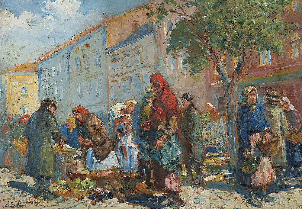 Erno Erb (Lwów 1878 lub 1890 - Lwów 1943) był artystą związanym ze środowiskiem lwowskim; mieszkał we Lwowie i w Truskawcu. Malował motywy miejskie, sceny rodzajowe, targowiska, charakterystyczne typy ukraińskich chłopów i Żydów, pejzaże i martwe natury. Posługiwał się pastelami, akwarelą i farbami olejnymi. Jego olejne obrazy, odznaczające się bogatą fakturą grubo kładzionej farby, bywały porównywane z pracami niemieckiego malarza Maxa Liebermana. Artysta wielokrotnie wystawiał w Towarzystwie Przyjaciół Sztuk Pięknych we Lwowie i w Krakowie oraz w warszawskiej Zachęcie. W roku 1929 brał udział w Powszechnej Wystawie Krajowej w Poznaniu, a w roku 1932 w Wystawie Sztuki Polskiej w Buffalo.